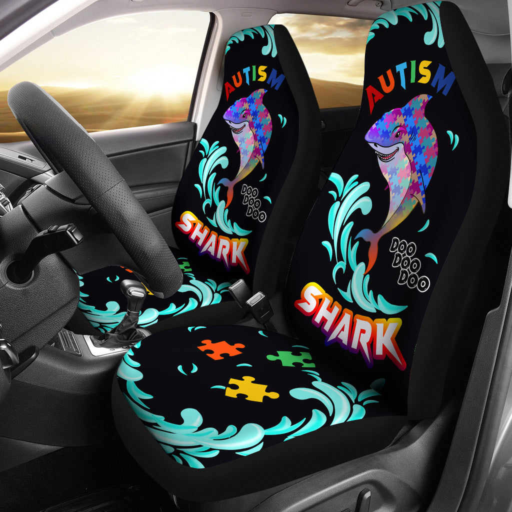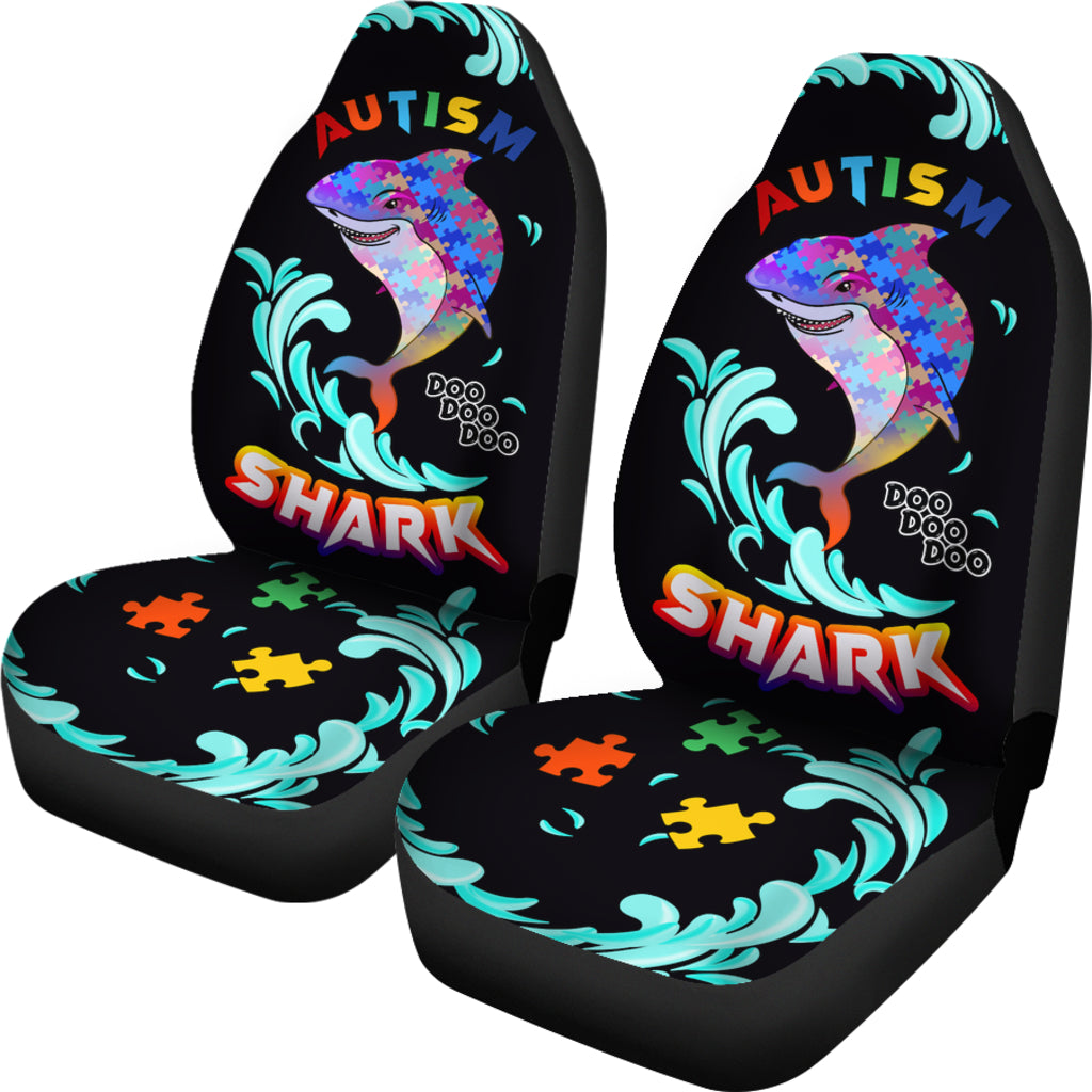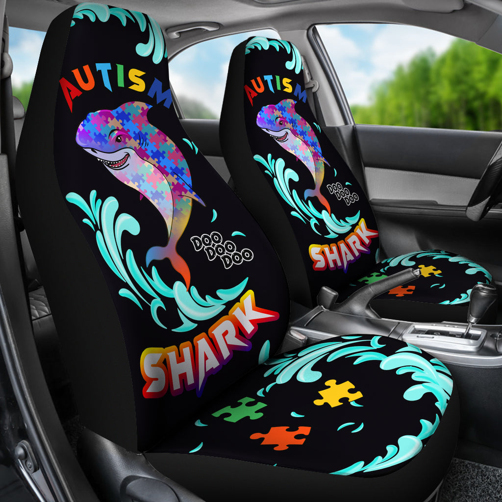 Autism Awareness Happy Shark Black Car Seat Cover Dad Mom Gift (Set of 2)