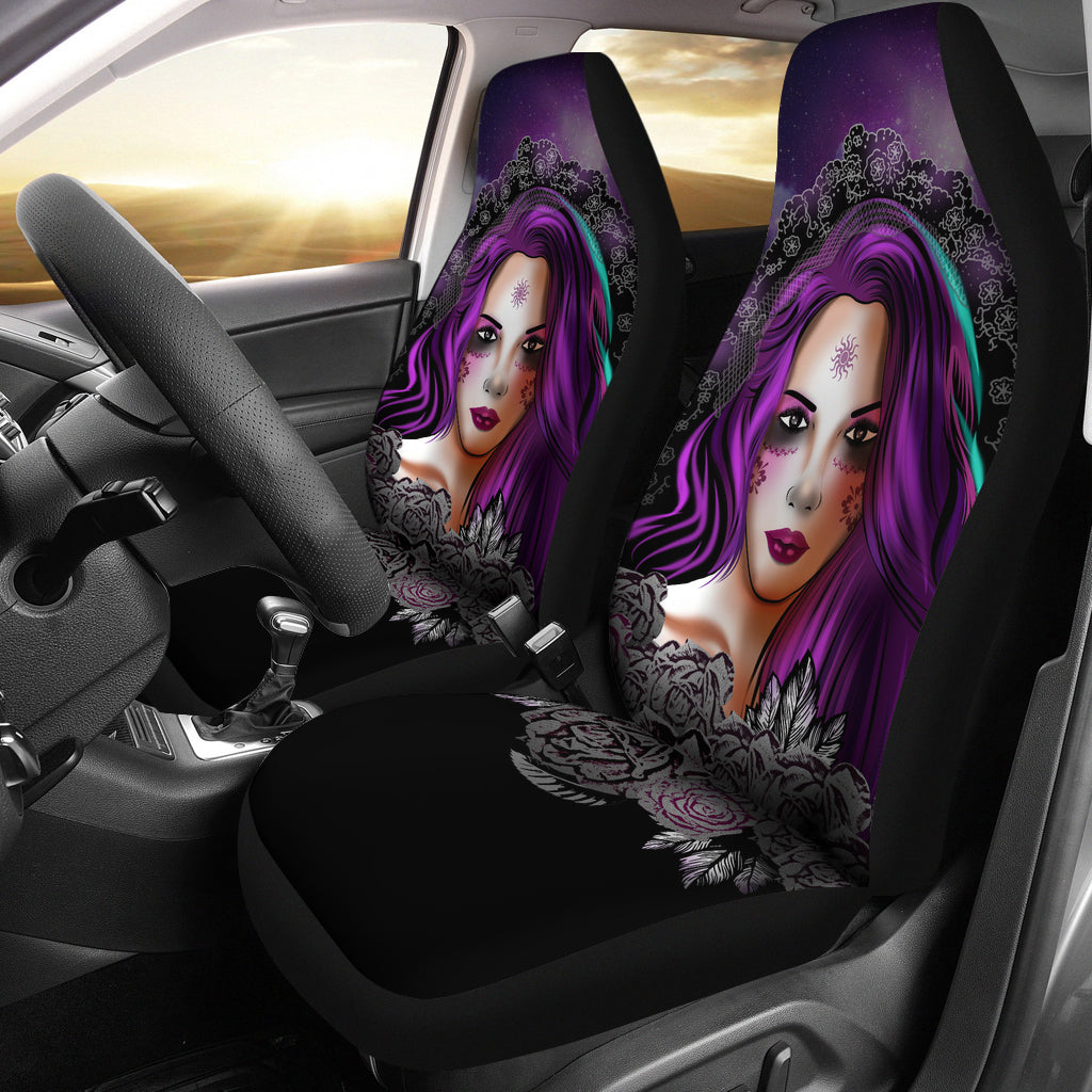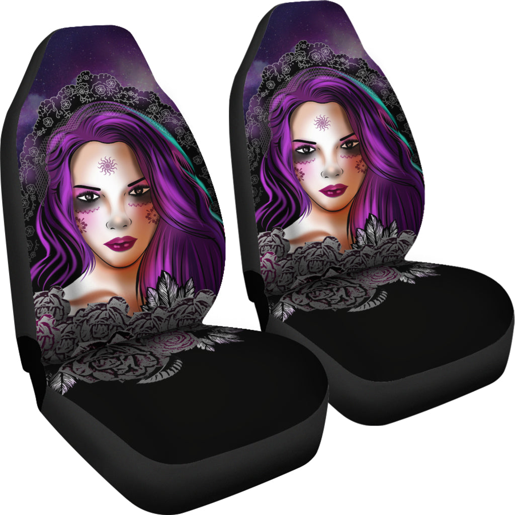 Sugar Skull Flowers Purple - Car Seat Covers Gift for dad, mom, mommy, daddy, grandma, grandpa, uncle, aunt, brother, sister, nonna, nona, mama, etc.