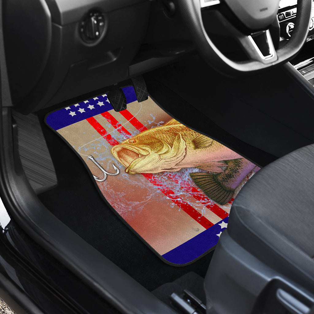 Fishing Angling Fish US Flag - Universal Front and Back Car Mats Gift (Set Of 2)