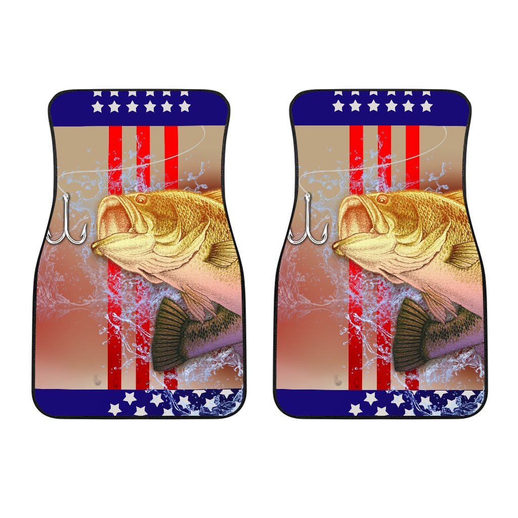 Fishing Angling Fish US Flag - Set of Front Back Car Mats or Set Of Front and Back Car Mats - Gift for Dad, Daddy, Mom, Mommy, Grandma, Grandpa, Uncle, Aunt, Brother, Sister, Nonna, Nona, Mama, etc.