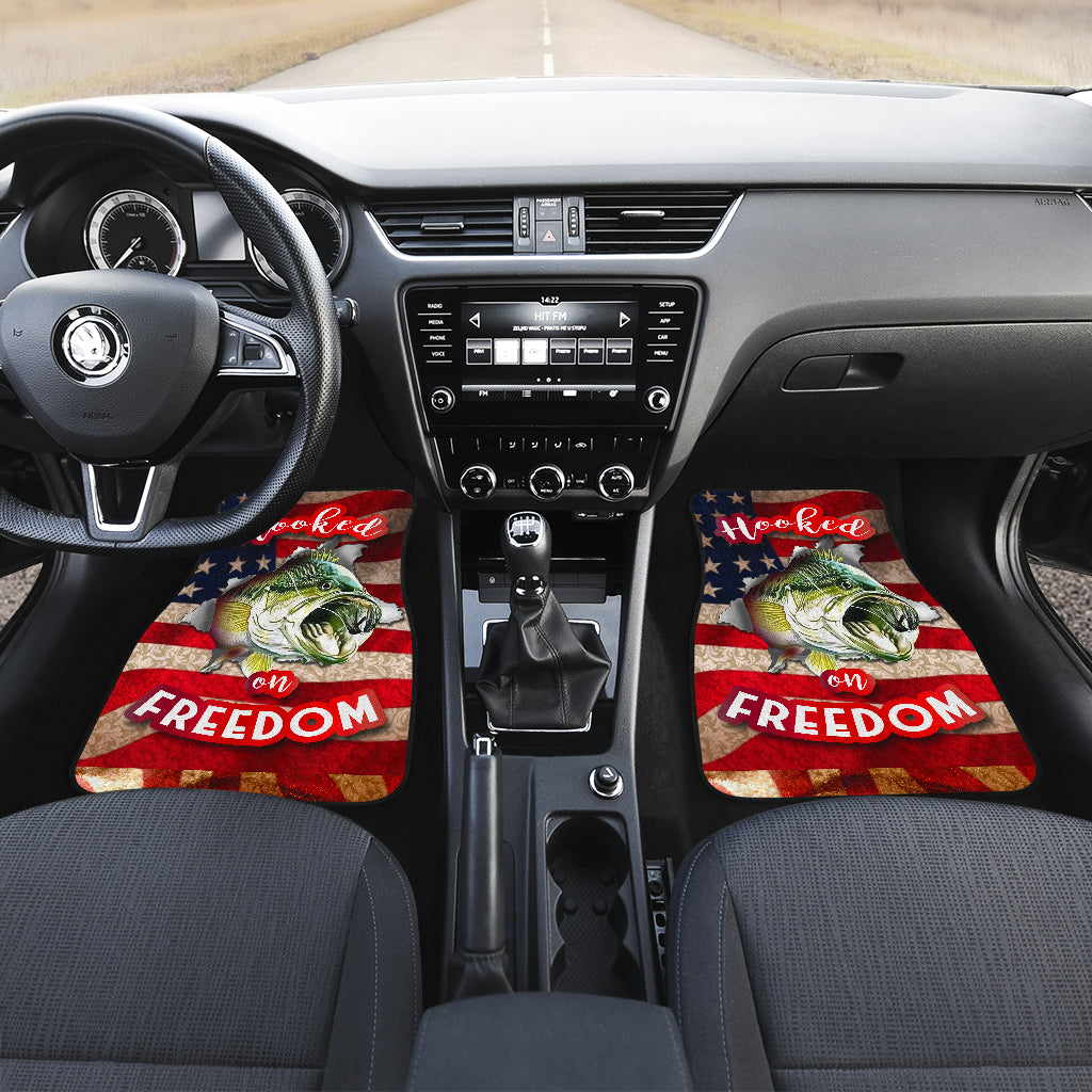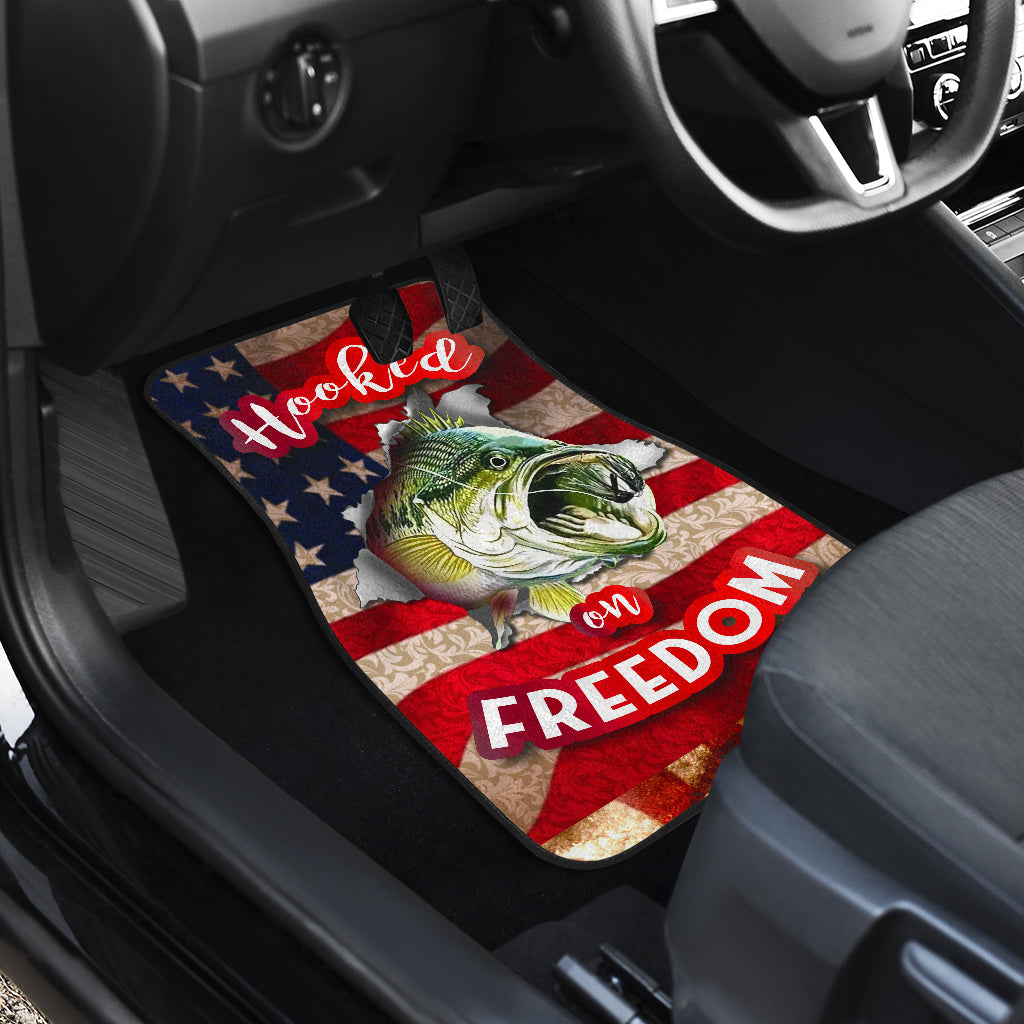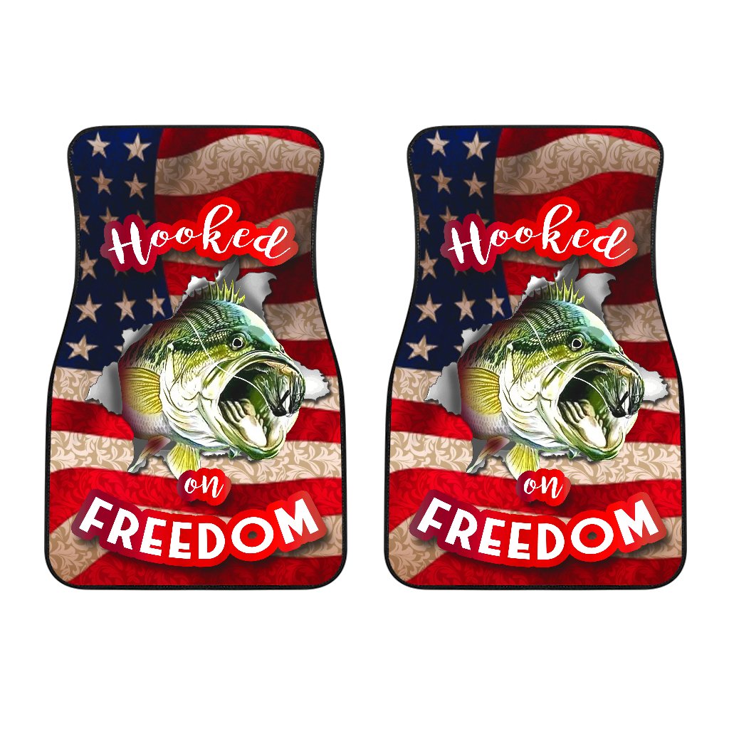 Fishing Hooked Freedom - Set of Front Back Car Mats or Set Of Front and Back Car Mats - Gift for Dad, Daddy, Mom, Mommy, Grandma, Grandpa, Uncle, Aunt, Brother, Sister, Nonna, Nona, Mama, etc.