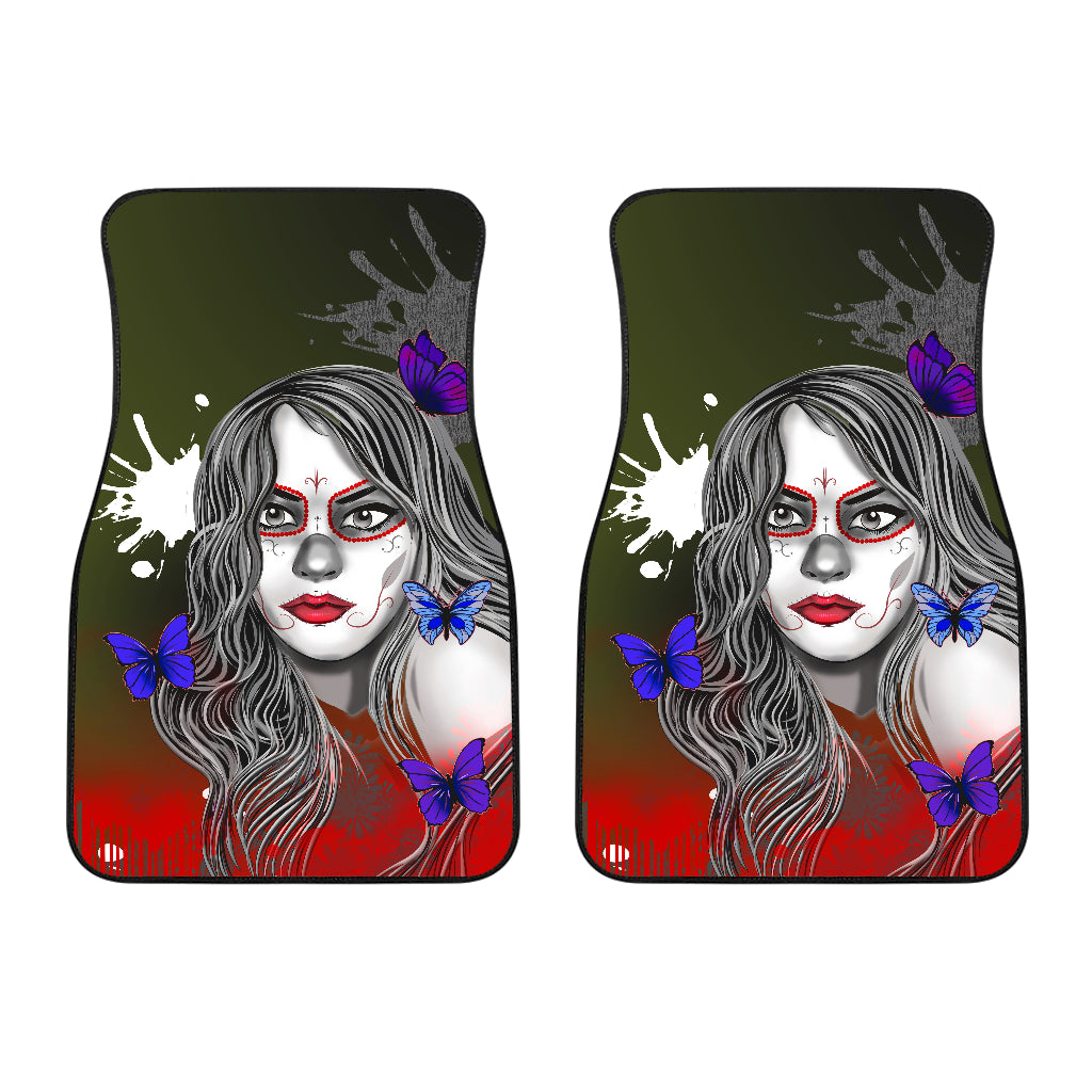 Style: Front Floor Mats Set Of 2 - Sugar Skull Purple Butterfly - Universal Front Car Mats Gift (Set of 2)