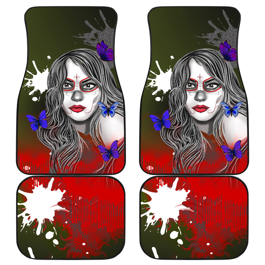 Sugar Skull Purple Butterfly - Set of Front Back Car Mats or Set Of Front and Back Car Mats - Gift for Dad, Daddy, Mom, Mommy, Grandma, Grandpa, Uncle, Aunt, Brother, Sister, Nonna, Nona, Mama, etc.