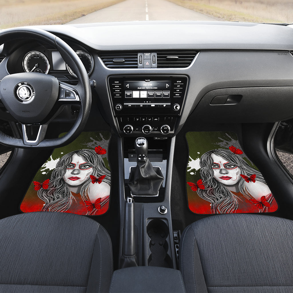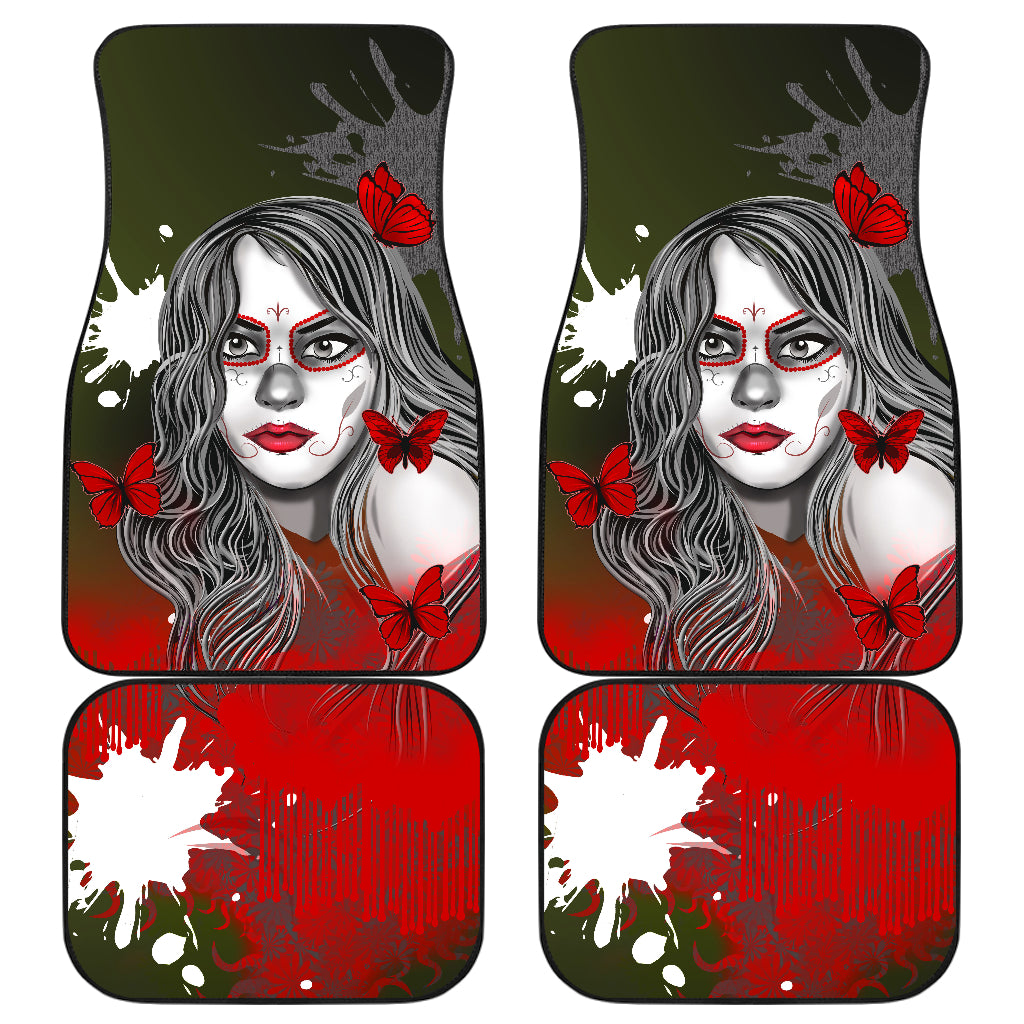 Sugar Skull Red Butterfly - Set of 4 Car Mats - Gift for Dad, Daddy, Mom, Mommy, Grandma, Grandpa, Uncle, Aunt, Brother, Sister, Nonna, Nona, Mama, etc.
