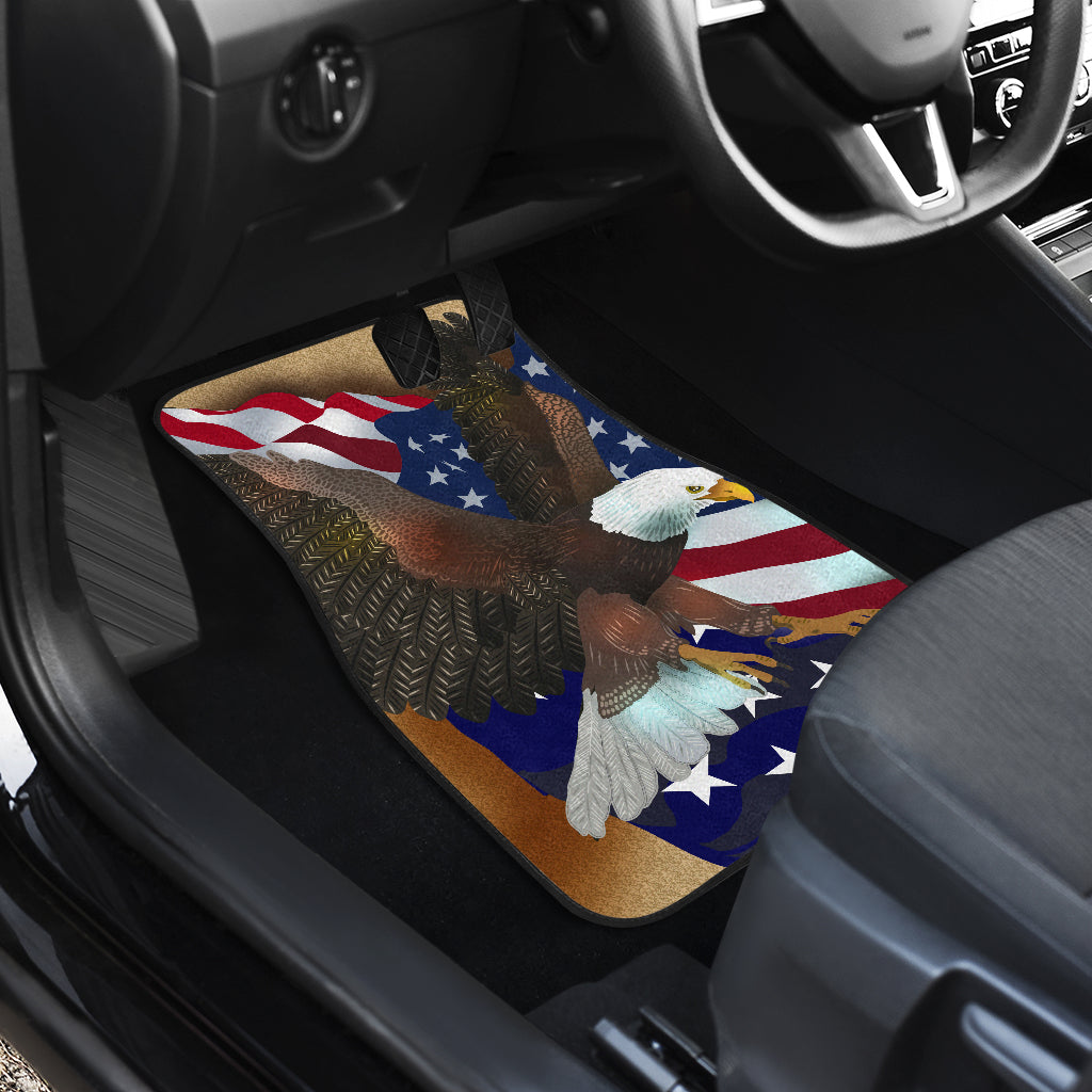 USA Flag Eagle Bird - Set of Front Car Mats - Gift for Dad, Daddy, Mom, Mommy, Grandma, Grandpa, Uncle, Aunt, Brother, Sister, Nonna, Nona, Mama, etc.
