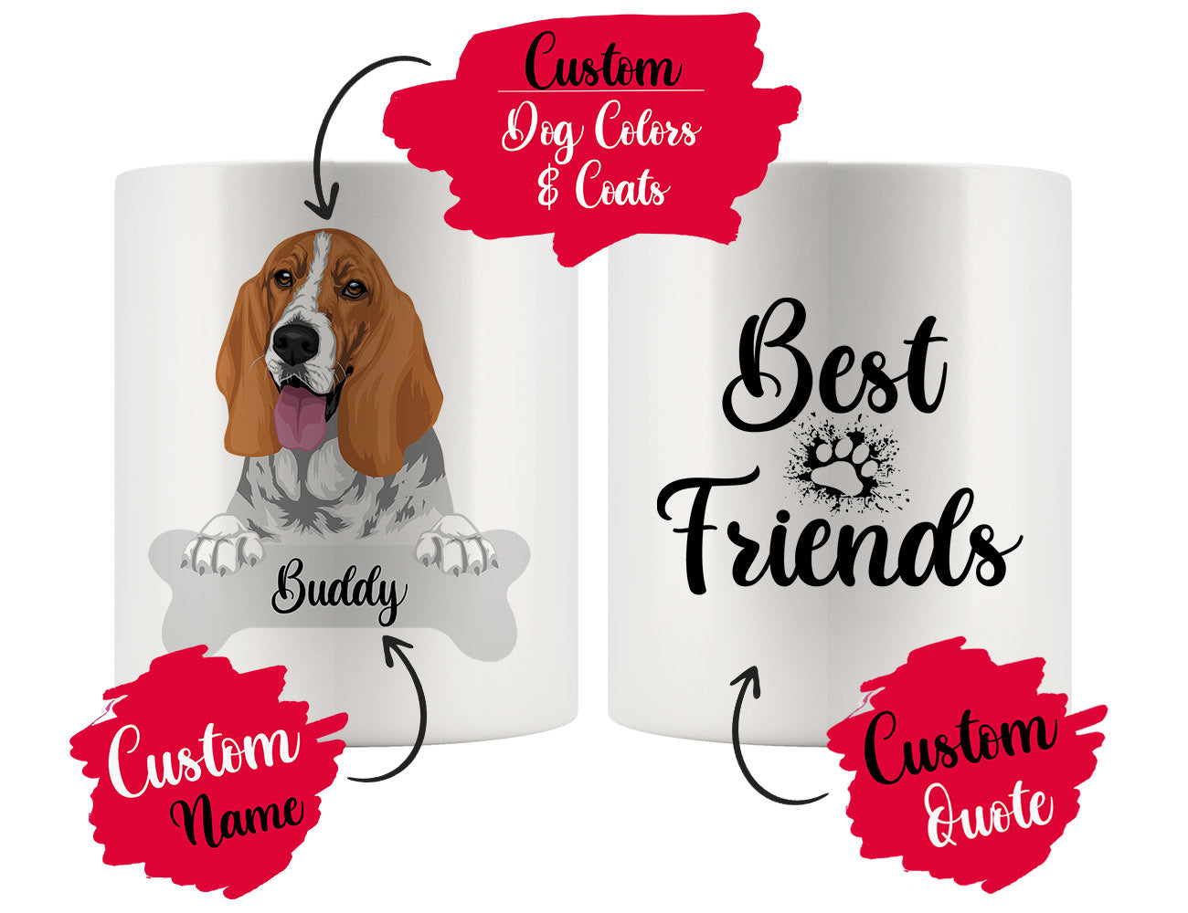 personalized basset hound dog mug, basset hound mom and dad mug, hush puppy coffee mug, basset hound dog gifts, custom basset hound gift, basset hound mom and dad, i love basset hound dog, basset hound mommy and daddy mug, basset hound owner mug, basset dog mama and dad mug, mothers day gift, best basset dog mom and dad, fathers day gift