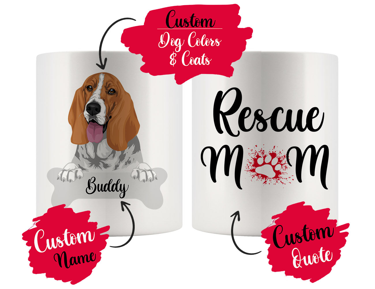 Personalized Basset Hound Dog Rescue Mom Dad Mug, Best Dog Owner Gift