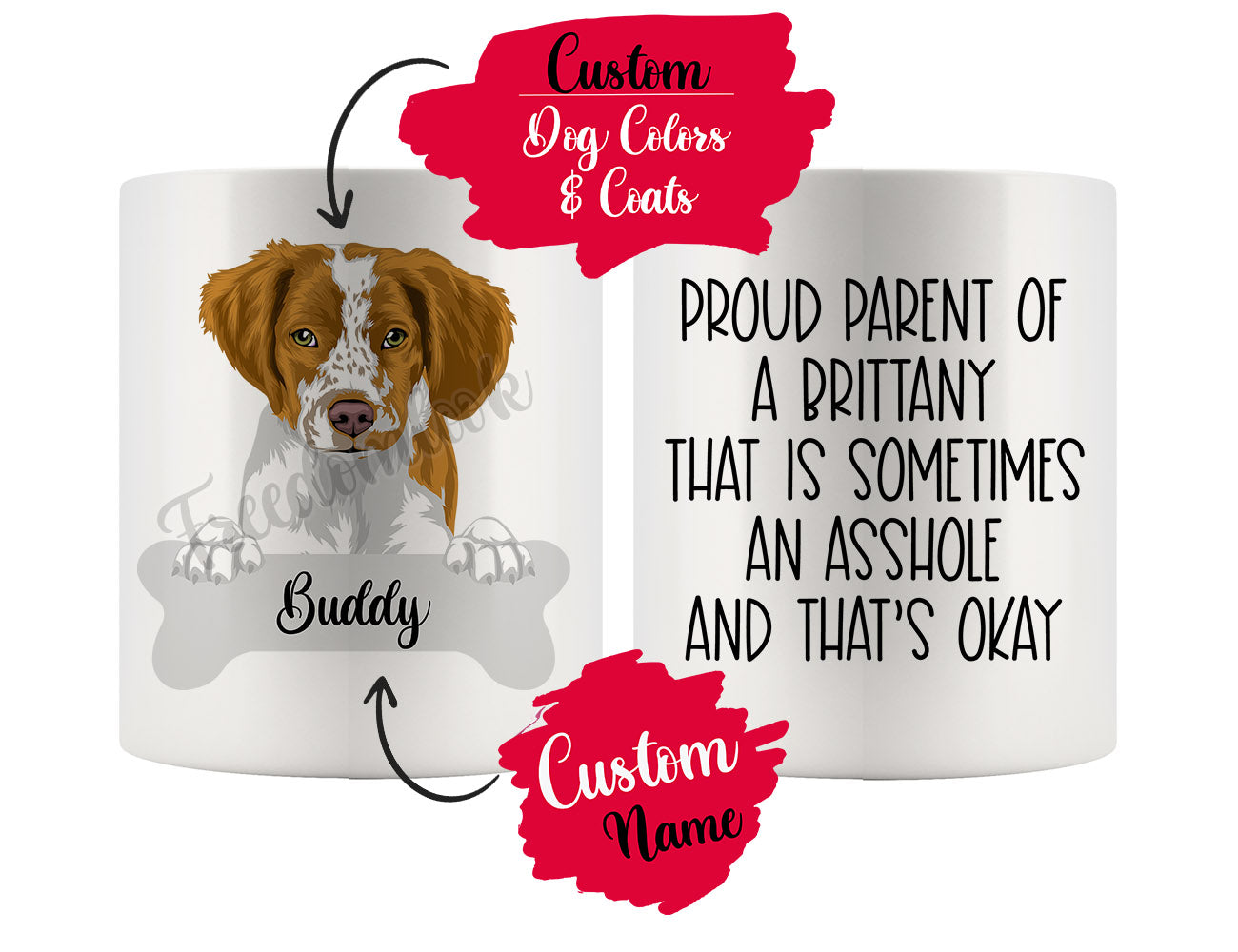 Personalized Brittany Dog Mom Dad Mug, Funny Dog Owner Gift