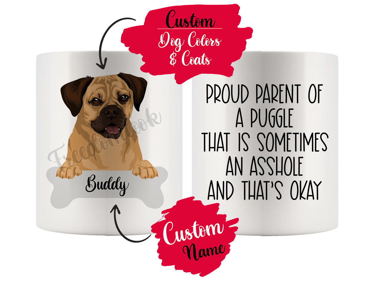 Personalized Puggle Dog Mom Dad Mug, Funny Dog Owner Gift