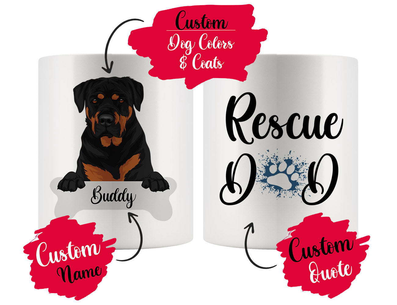 Personalized Rottweiler Dog Rescue Mom Dad Mug, Best Dog Owner Gift