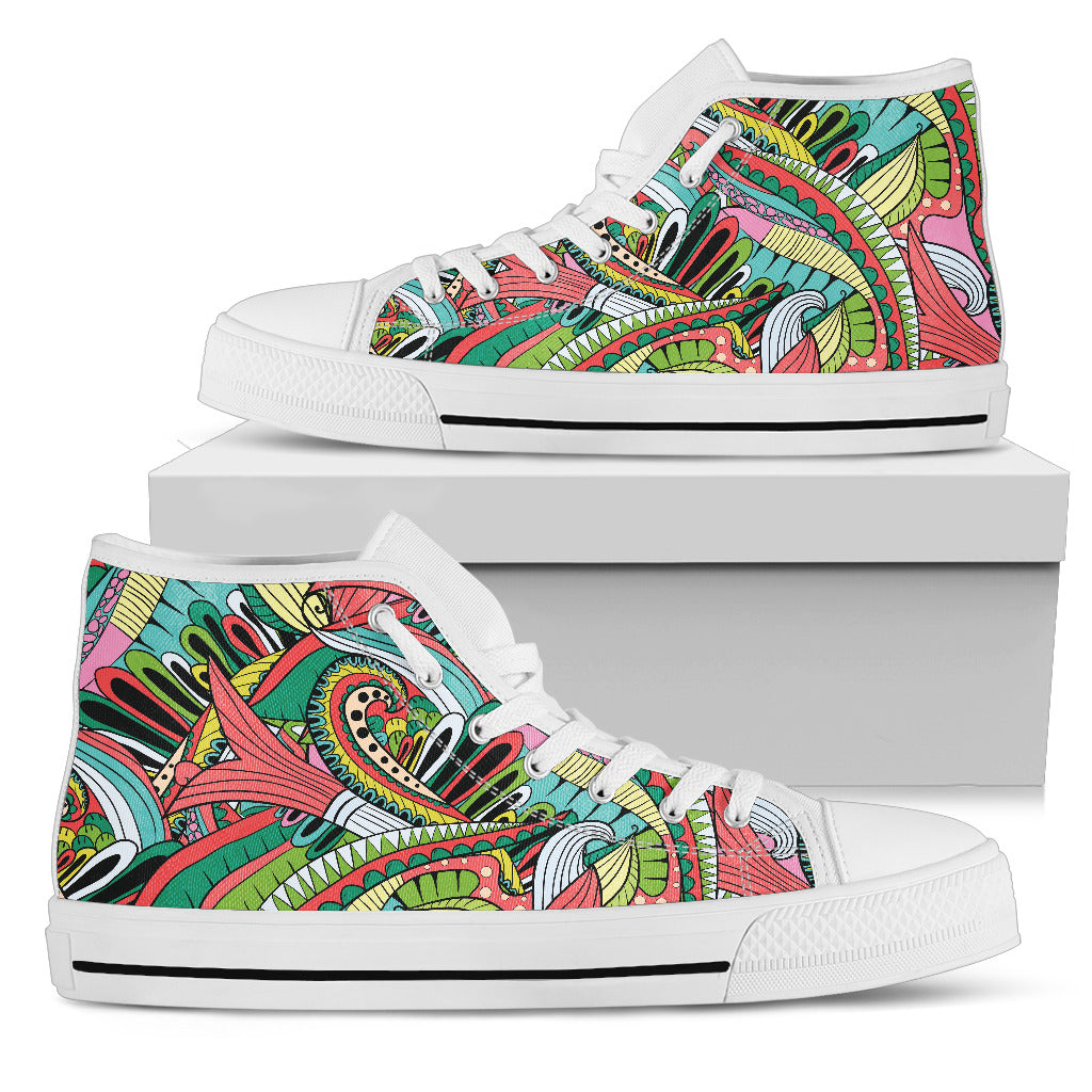 Funky Patterns in Greens - Women's High Top Shoes (White)