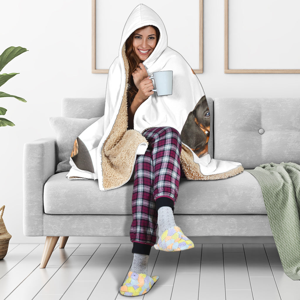 Dachshund Dog Warm Cozy Hooded Sherpa And Microfiber Blanket With Hood