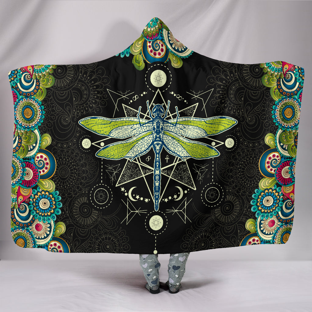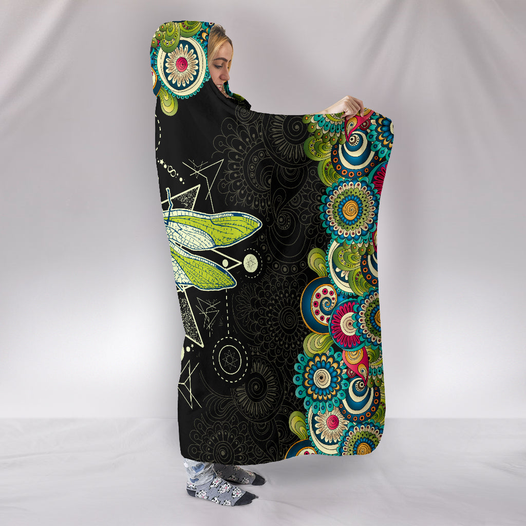 Dragonfly Cozy Warm Hooded Sherpa And Microfiber Blanket With Hood