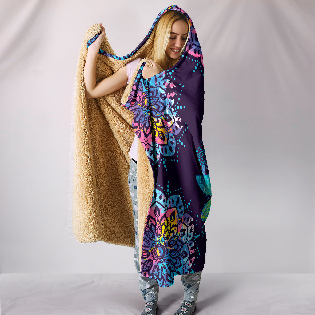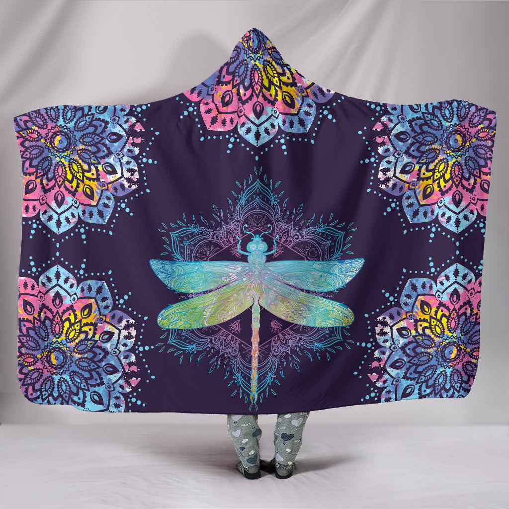 Dragonfly Mandala Warm Hooded Sherpa And Microfiber Blanket With Hood