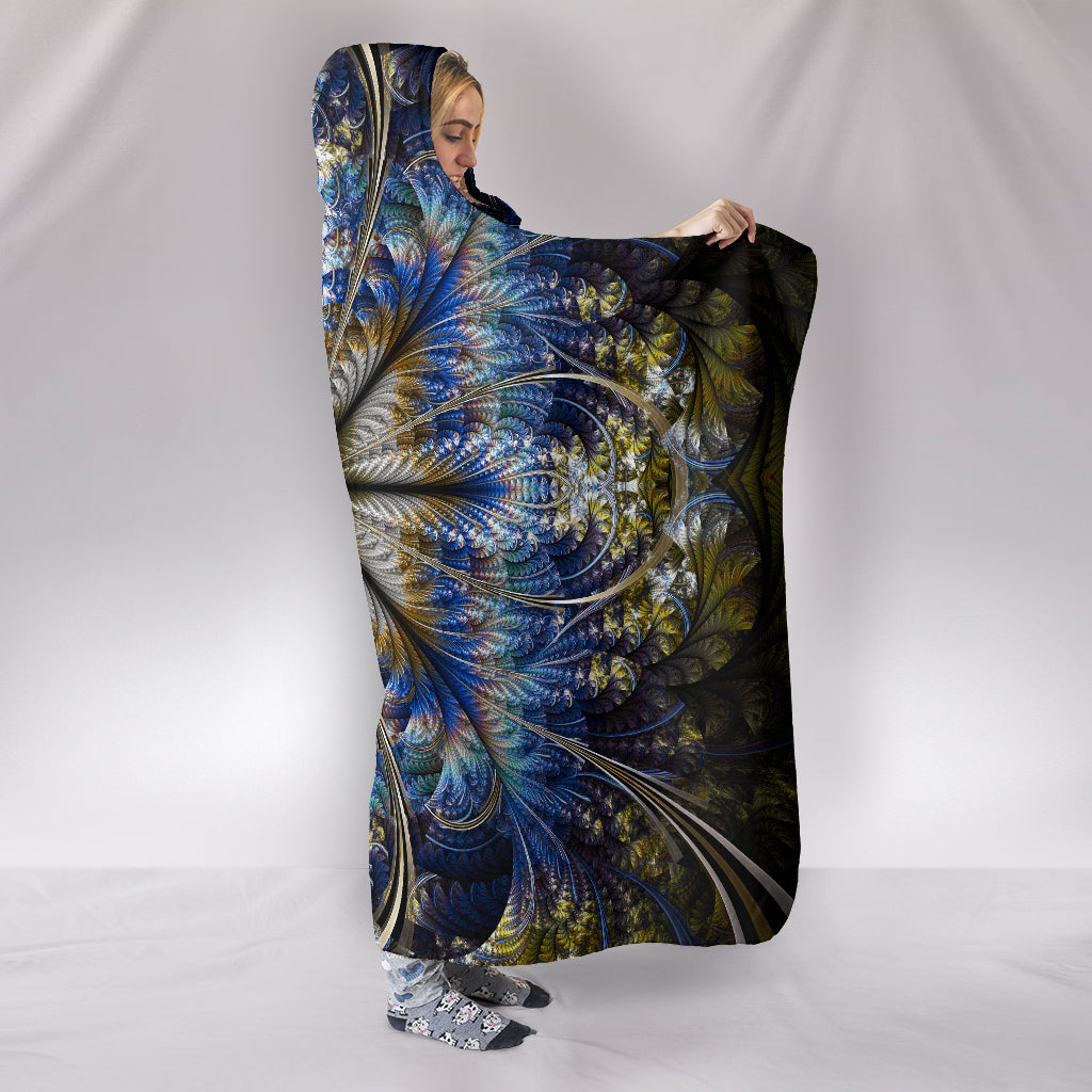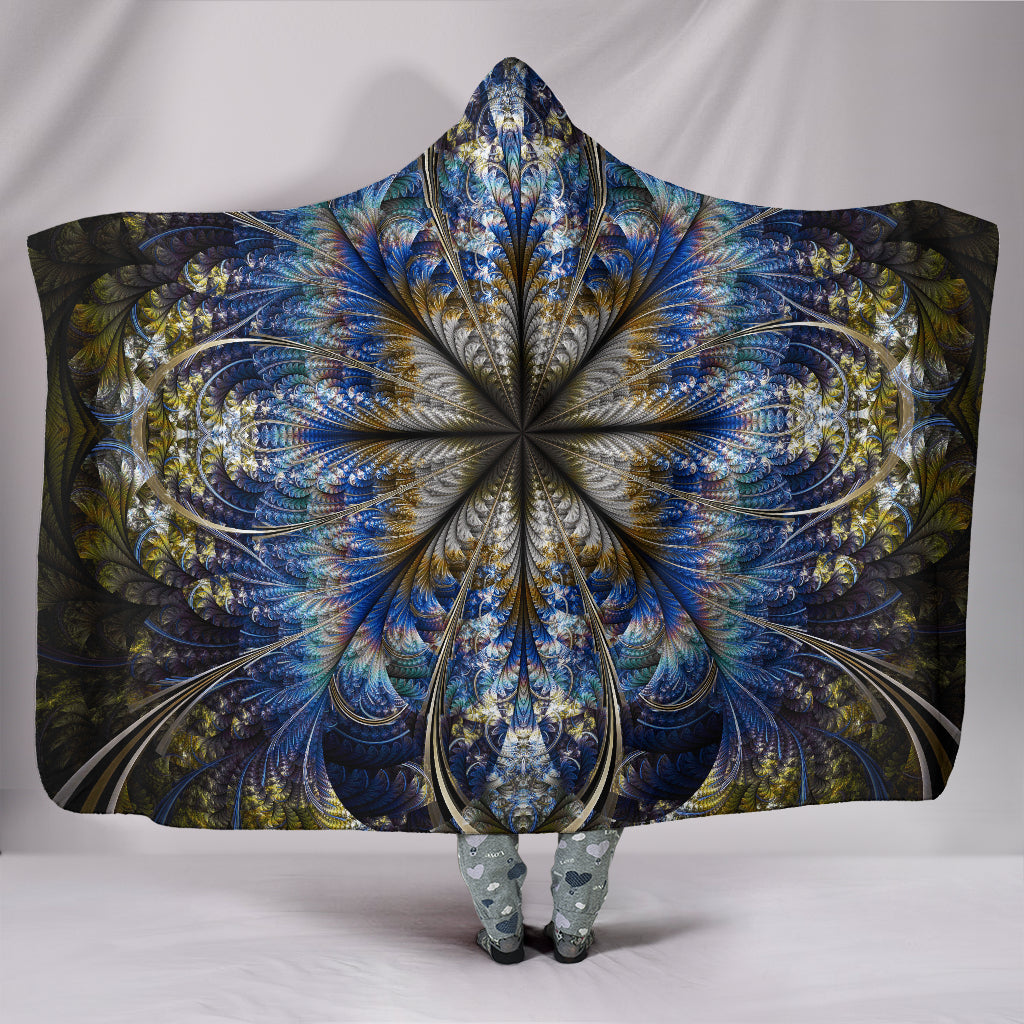 Fractal Mandala Warm Cozy Hooded Sherpa And Microfiber Blanket With Hood