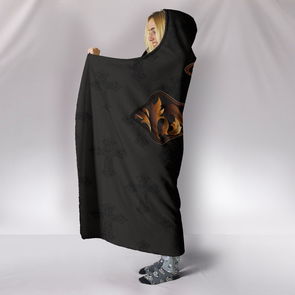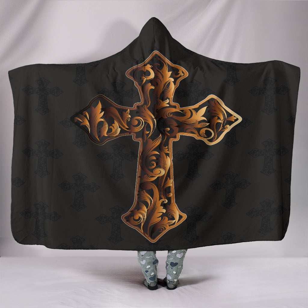 Gold Cross Cozy Warm Hooded Sherpa And Microfiber Blanket With Hood