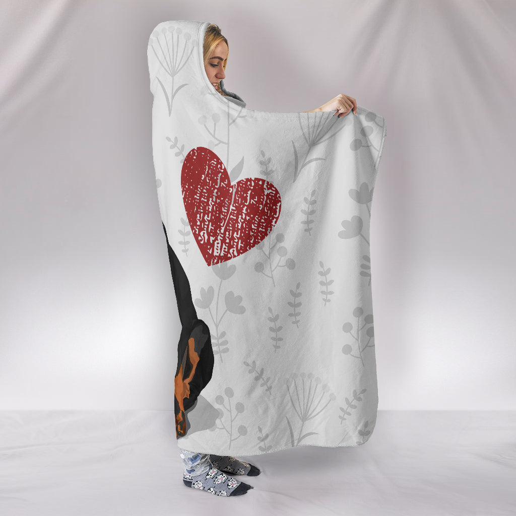Love Doberman Cozy Warm Hooded Sherpa And Microfiber Blanket With Hood