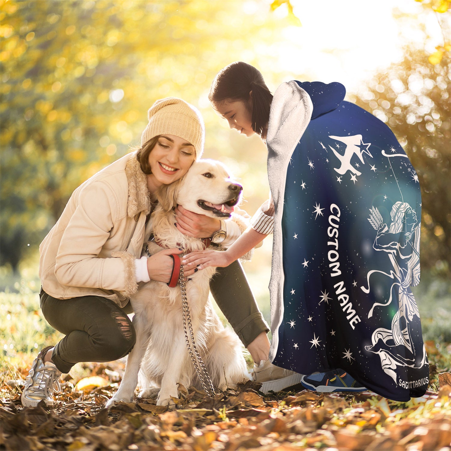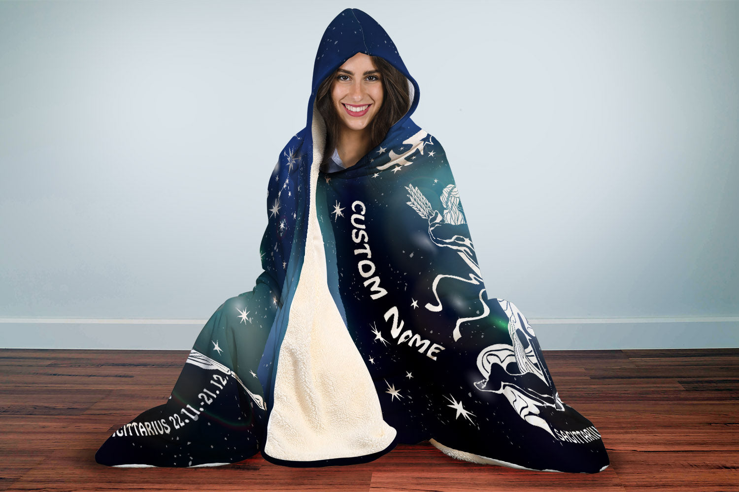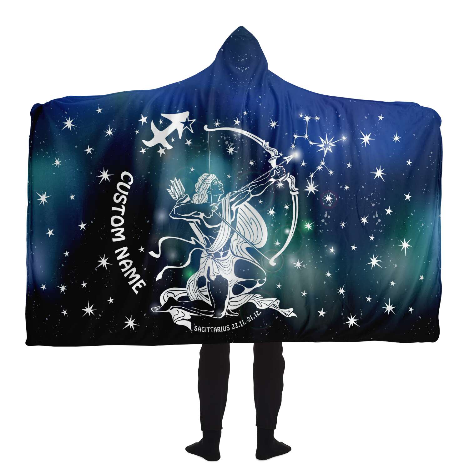 Personalized Sagittarius Horoscope Zodiac Star Sign Hooded Blanket