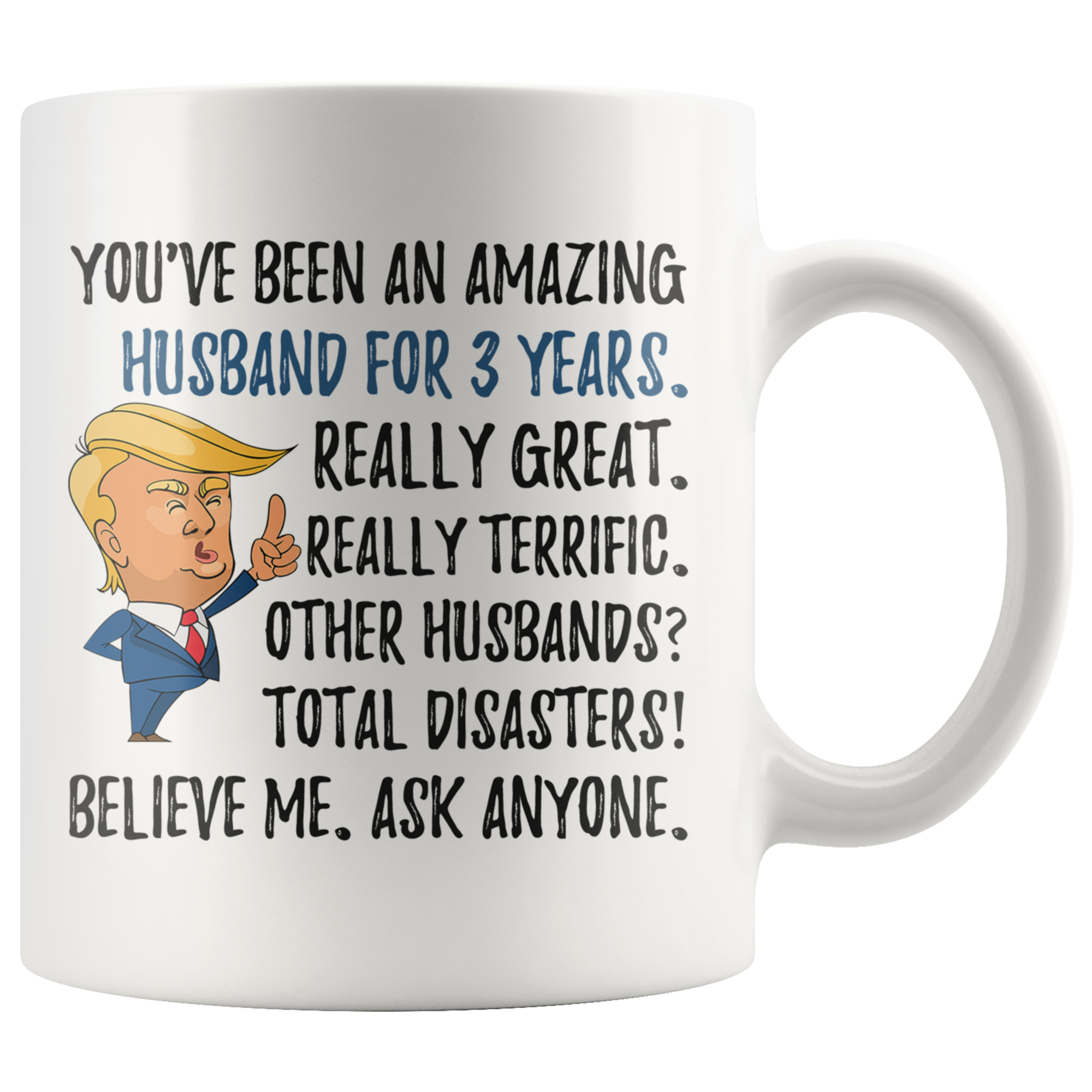 Funny Amazing Husband For 3 Years Coffee Mug, Third Anniversary Husband Trump Gifts, 3rd Anniversary Mug, 3 Years Together With My Hubby