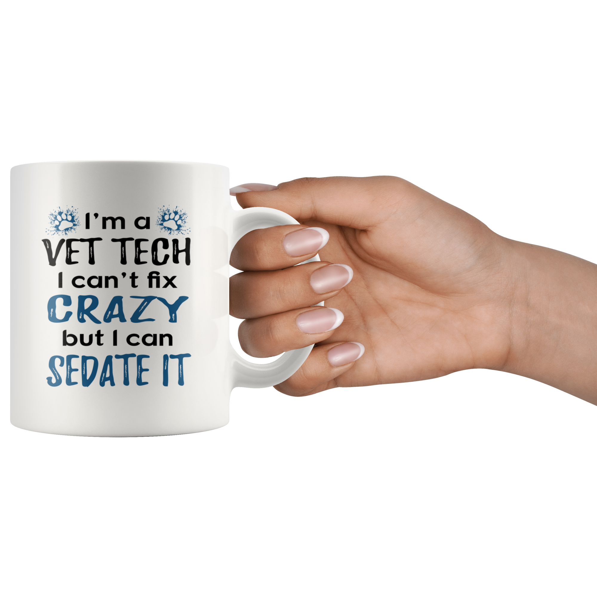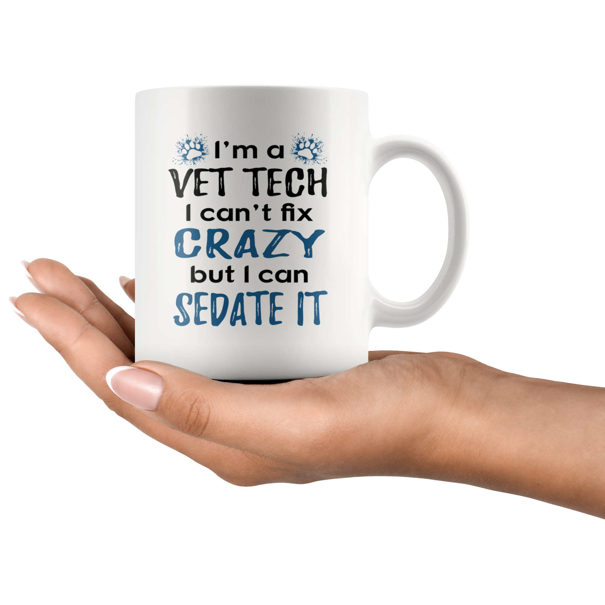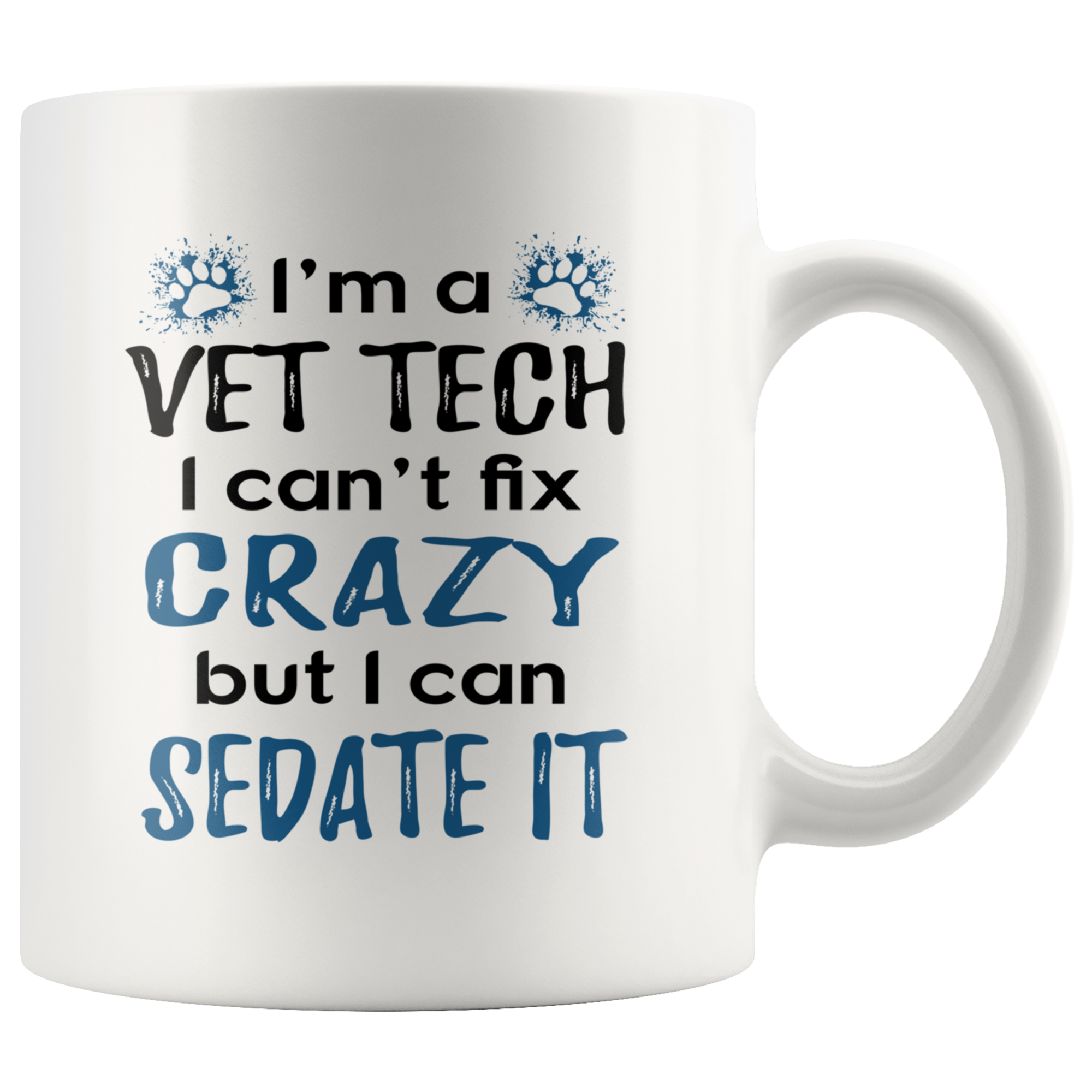 • THE "I'M A VET TECH I CAN'T FIX CRAZY BUT I CAN SEDATE IT" MUG is the perfect funny gift for vet technician.