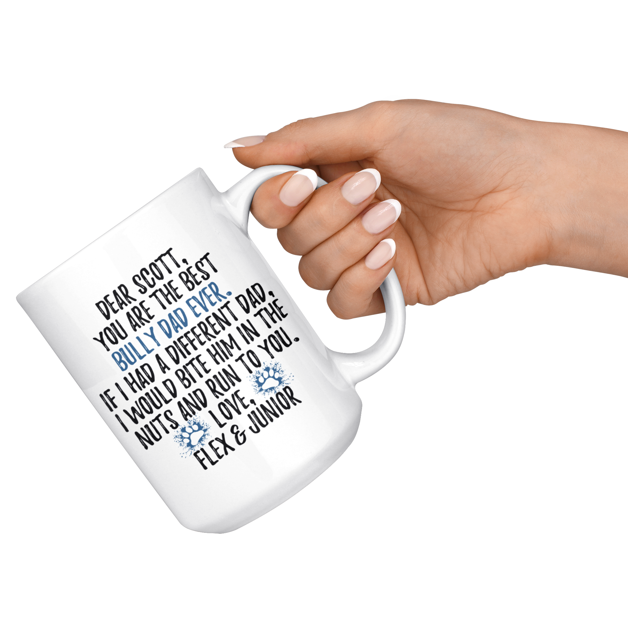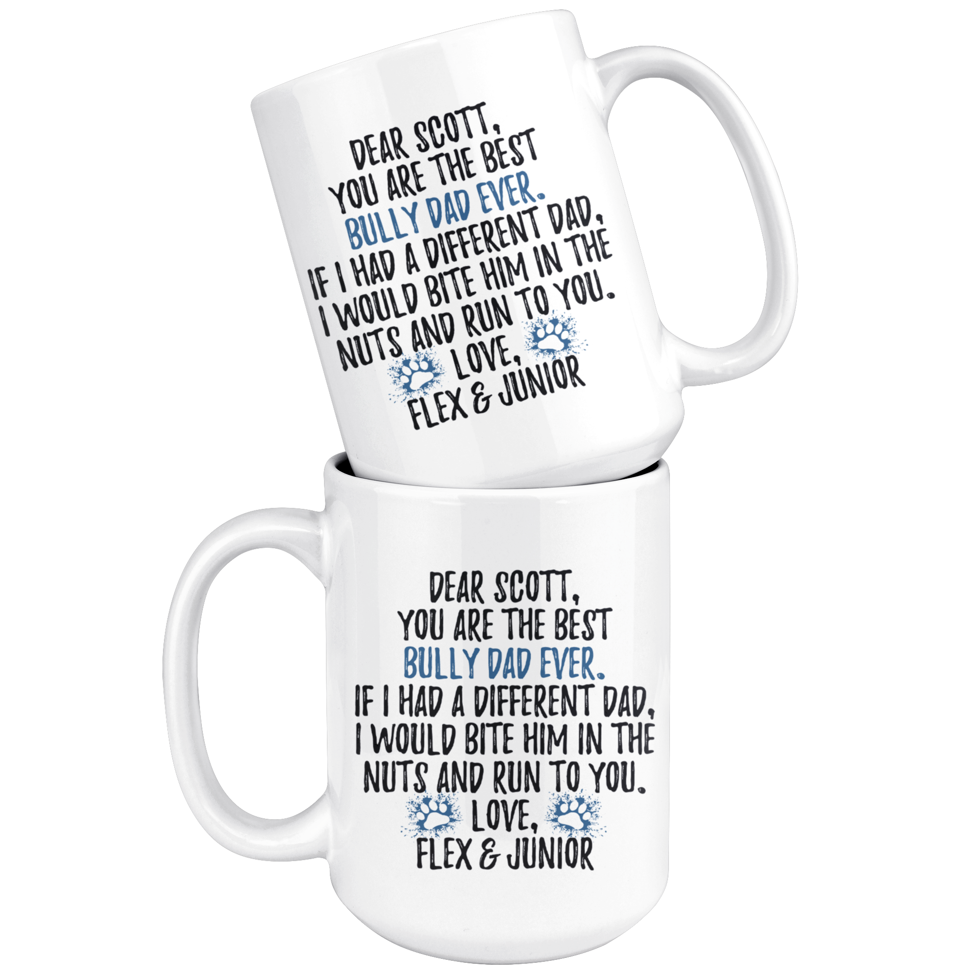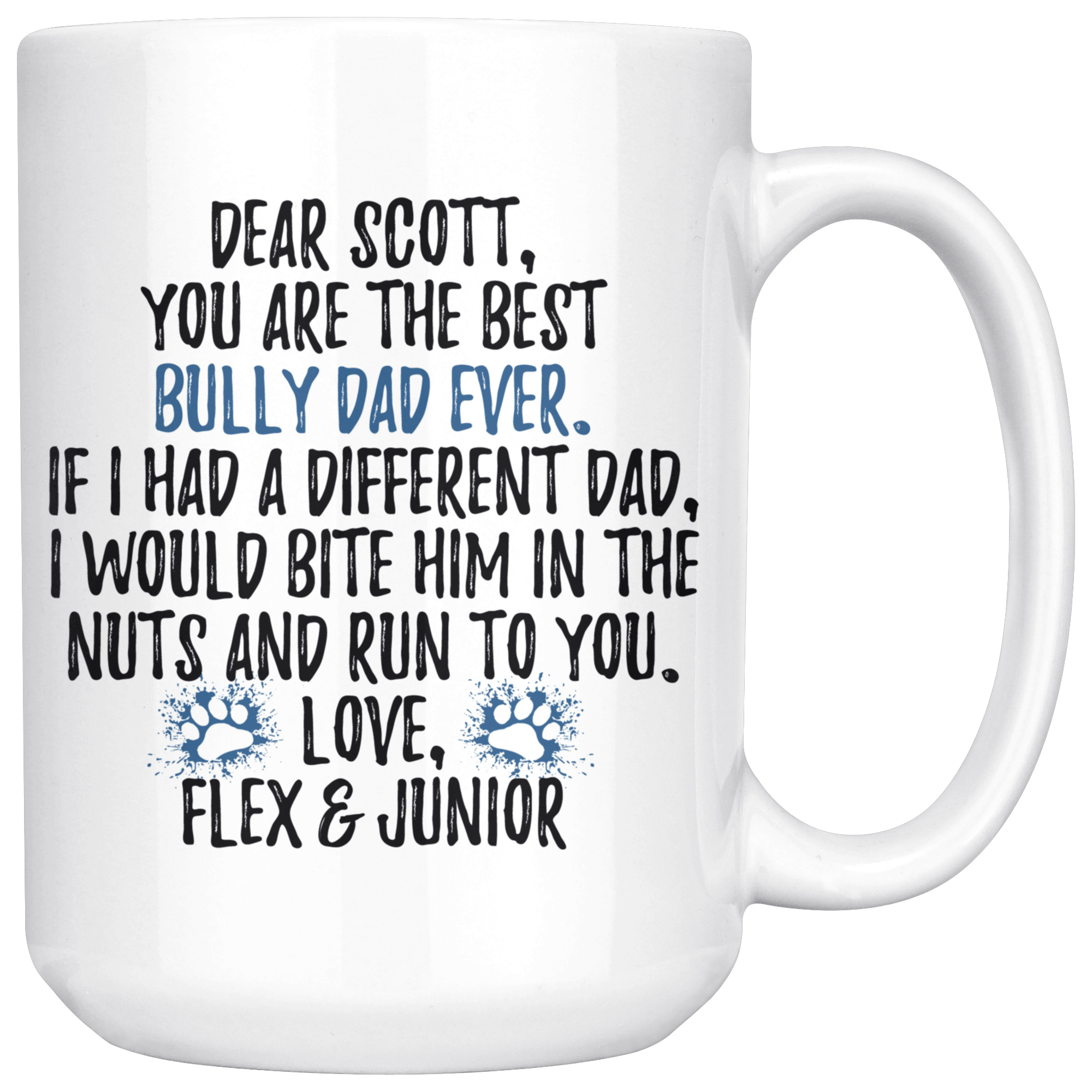 Personalized American Bully Dog Flex & Junior Dad Scott Coffee Mug (15 oz)