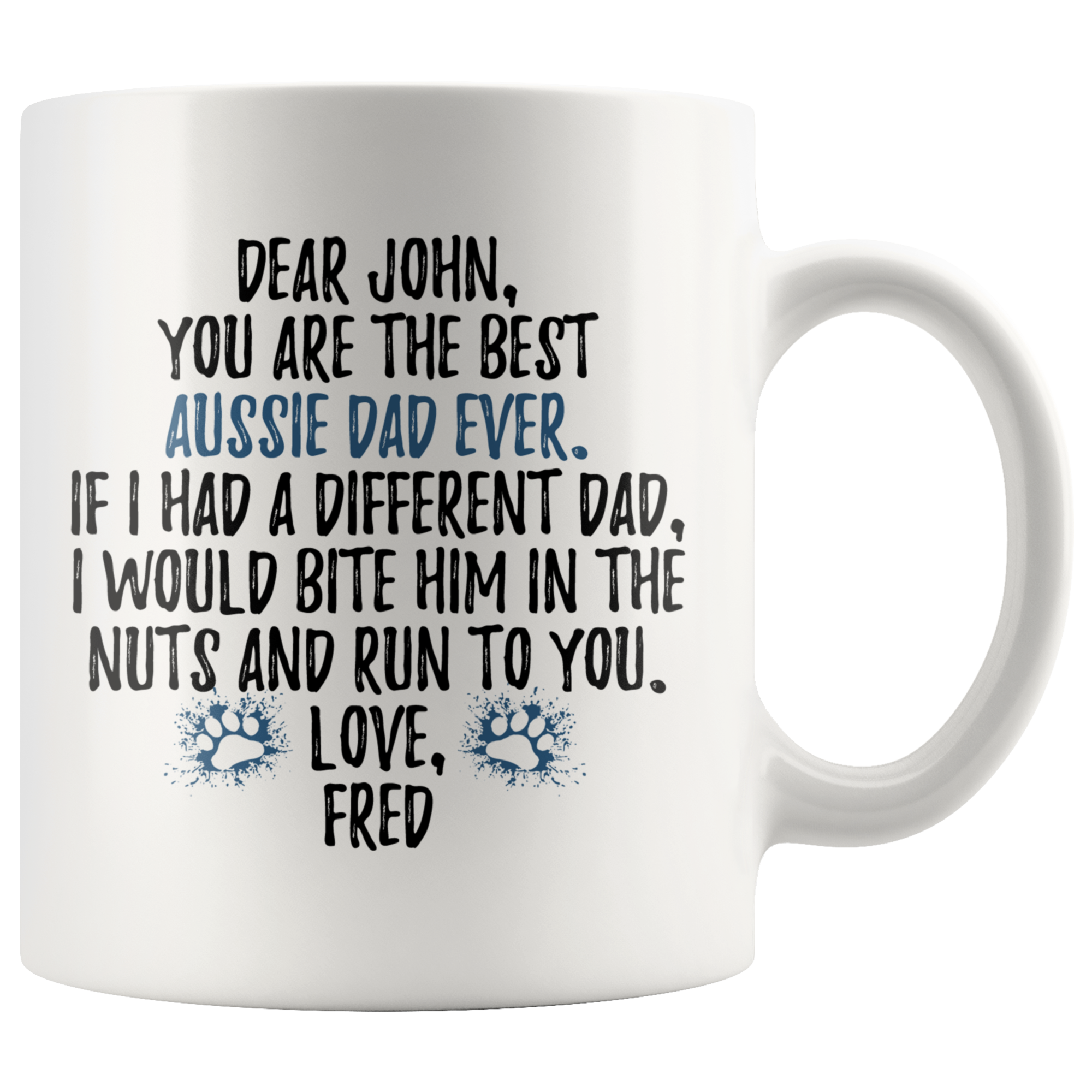 Personalized Australian Shepherd Dog Fred Dad John Coffee Mug (11 oz)