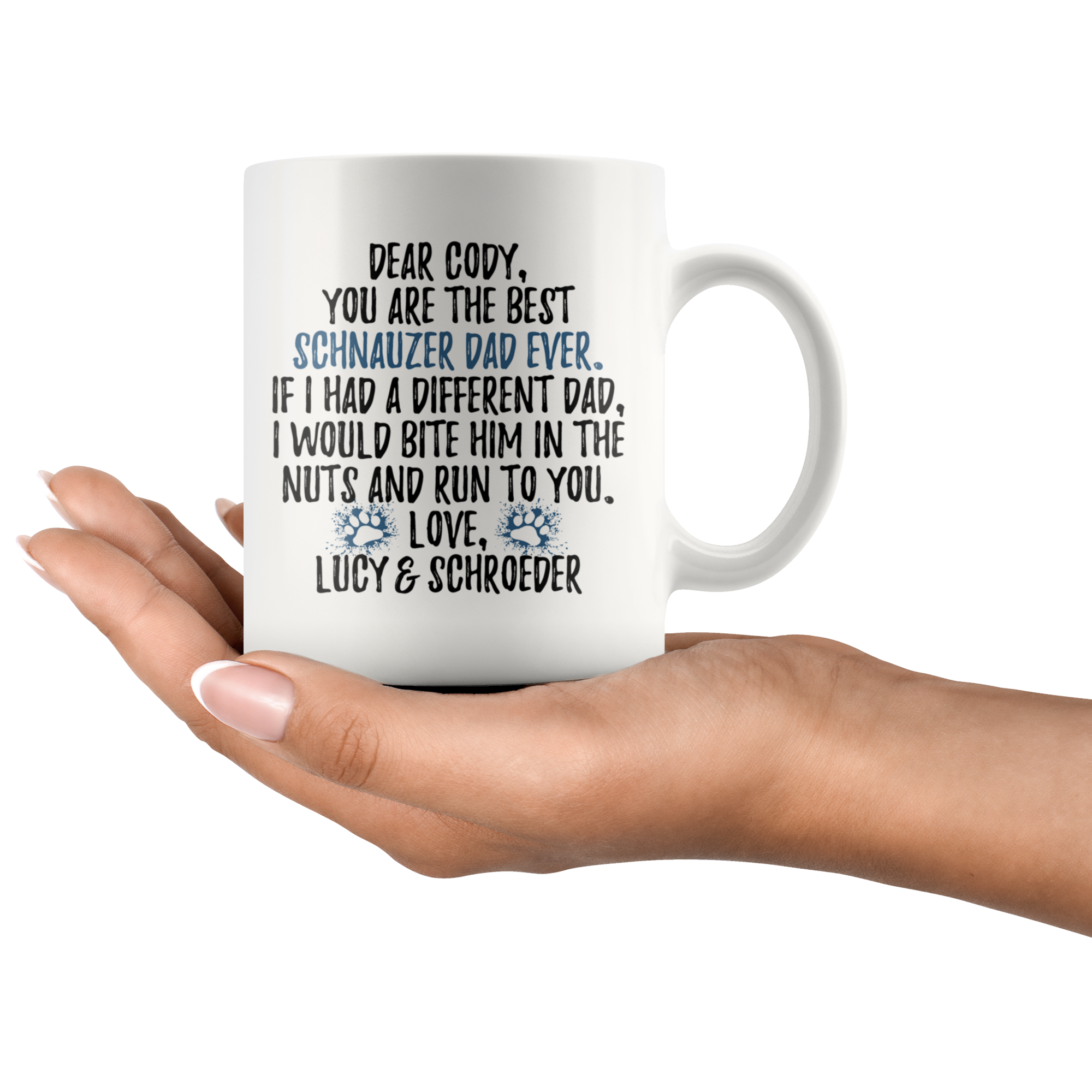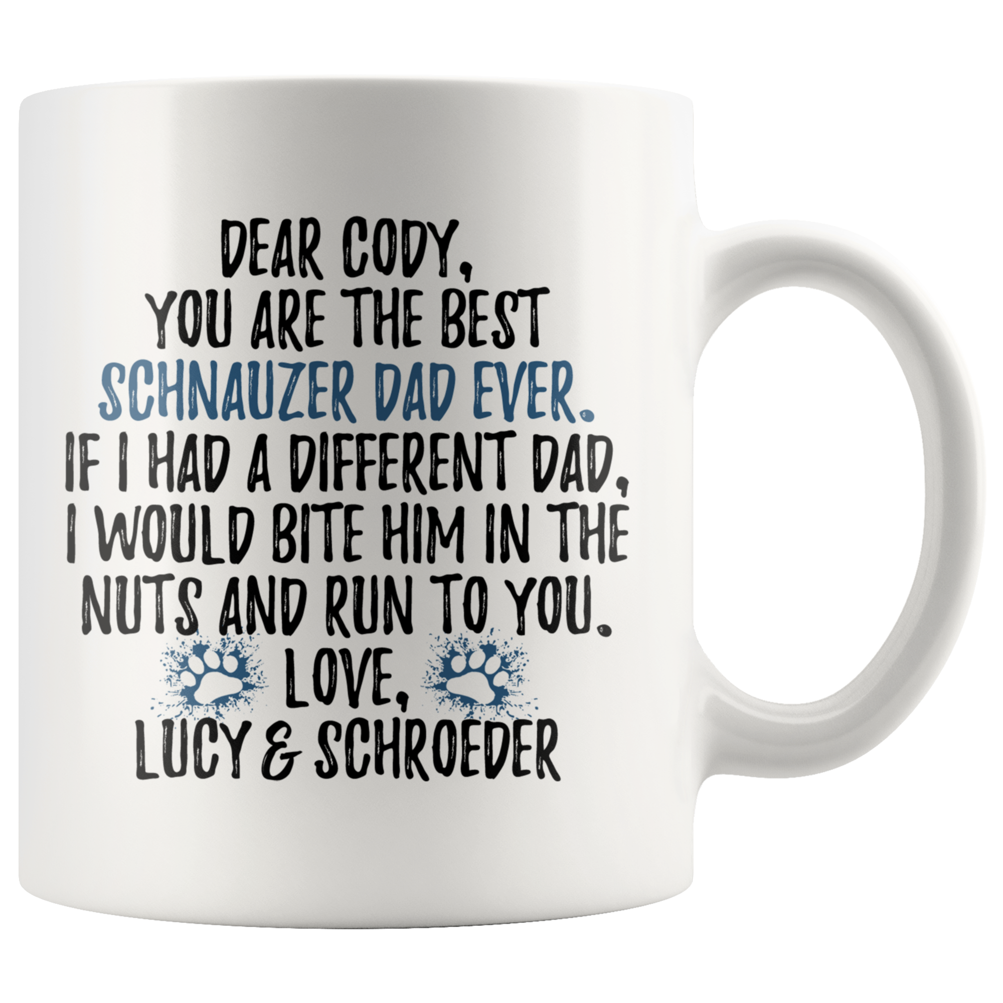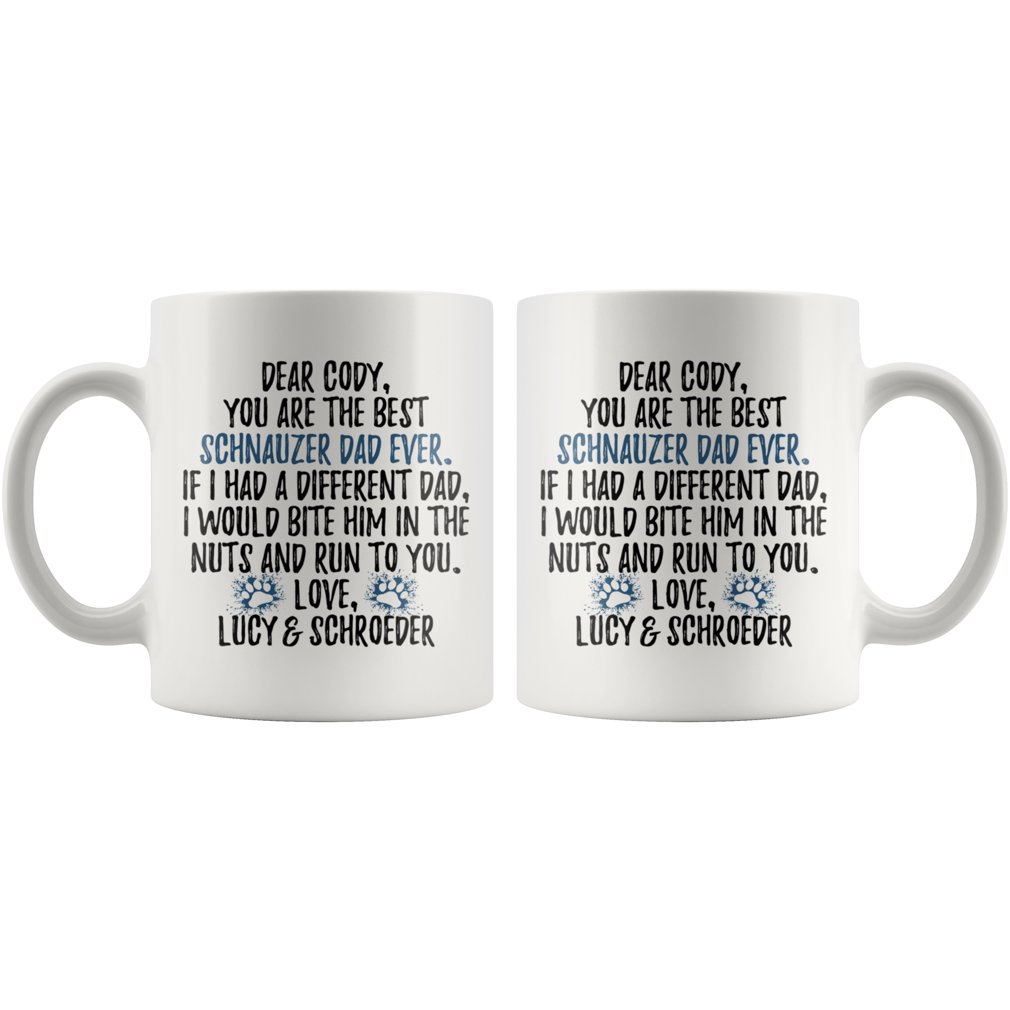 Personalized Schnauzer Dog Lucy & Schroeder Dad Cody Coffee Mug (11 oz)