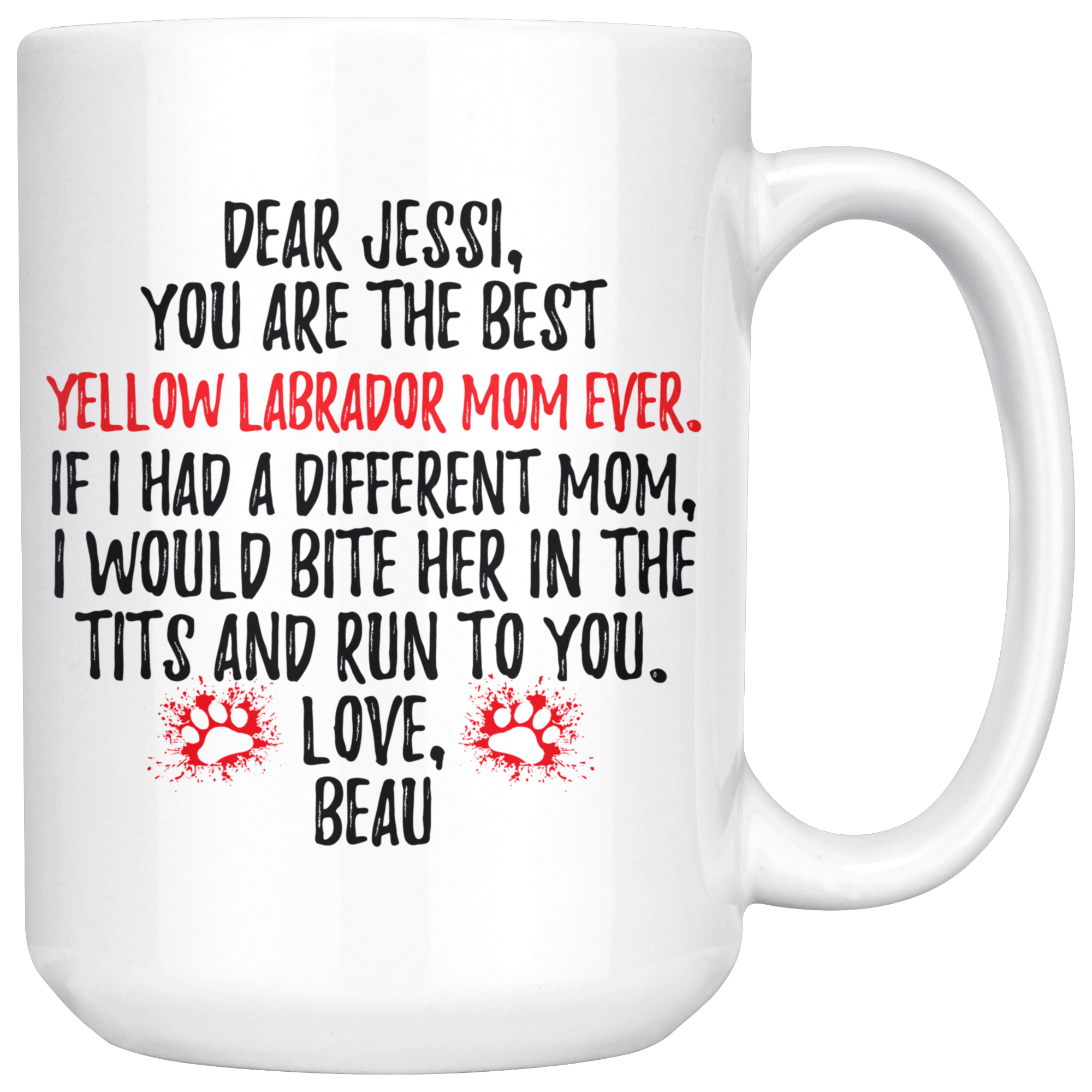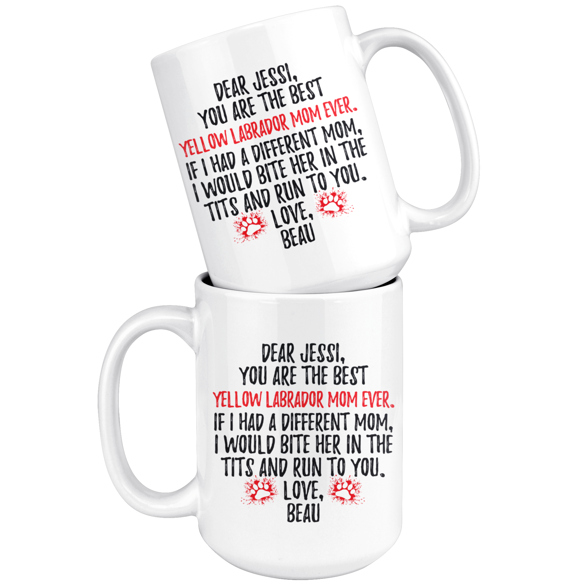 Personalized Yellow Labrador Dog Beau Mom Jessi Coffee Mug (15 oz)