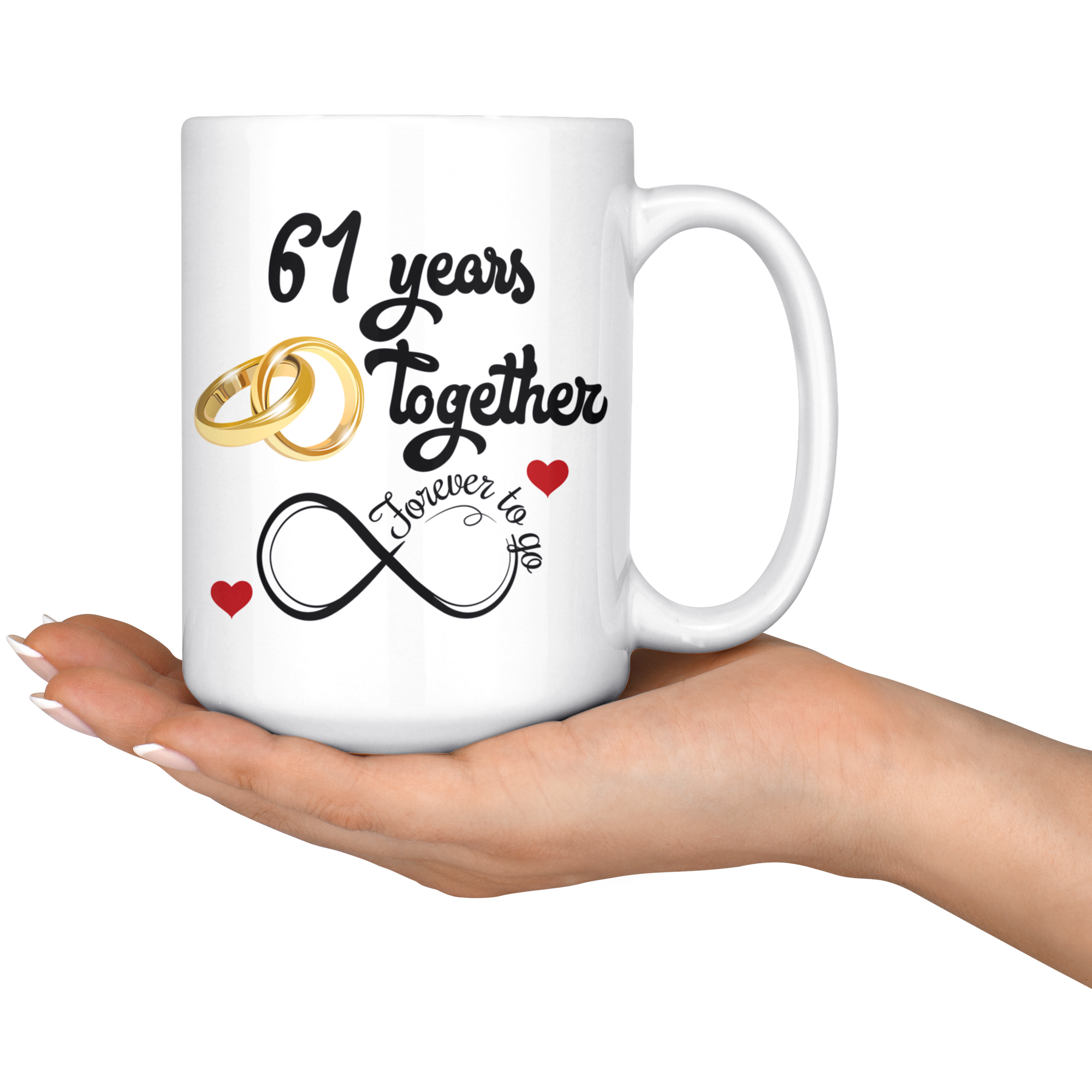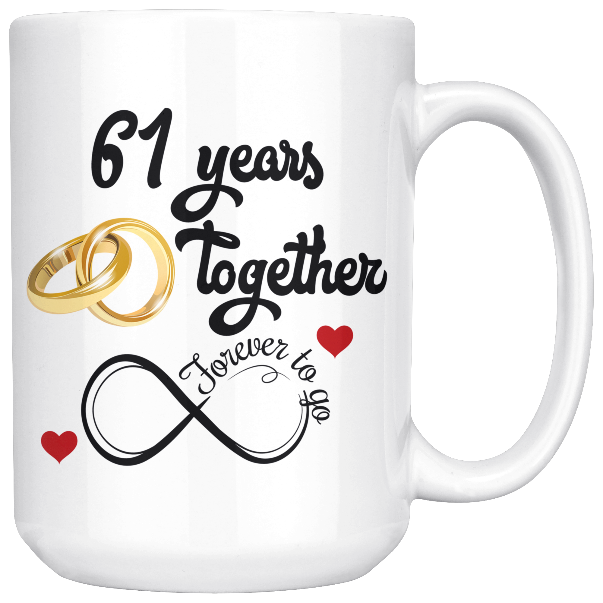 61st Wedding Anniversary Gift For Him And Her, Married For 61 Years, 61 Years Together With Her, 61st Anniversary Mug For Husband & Wife (15 oz )