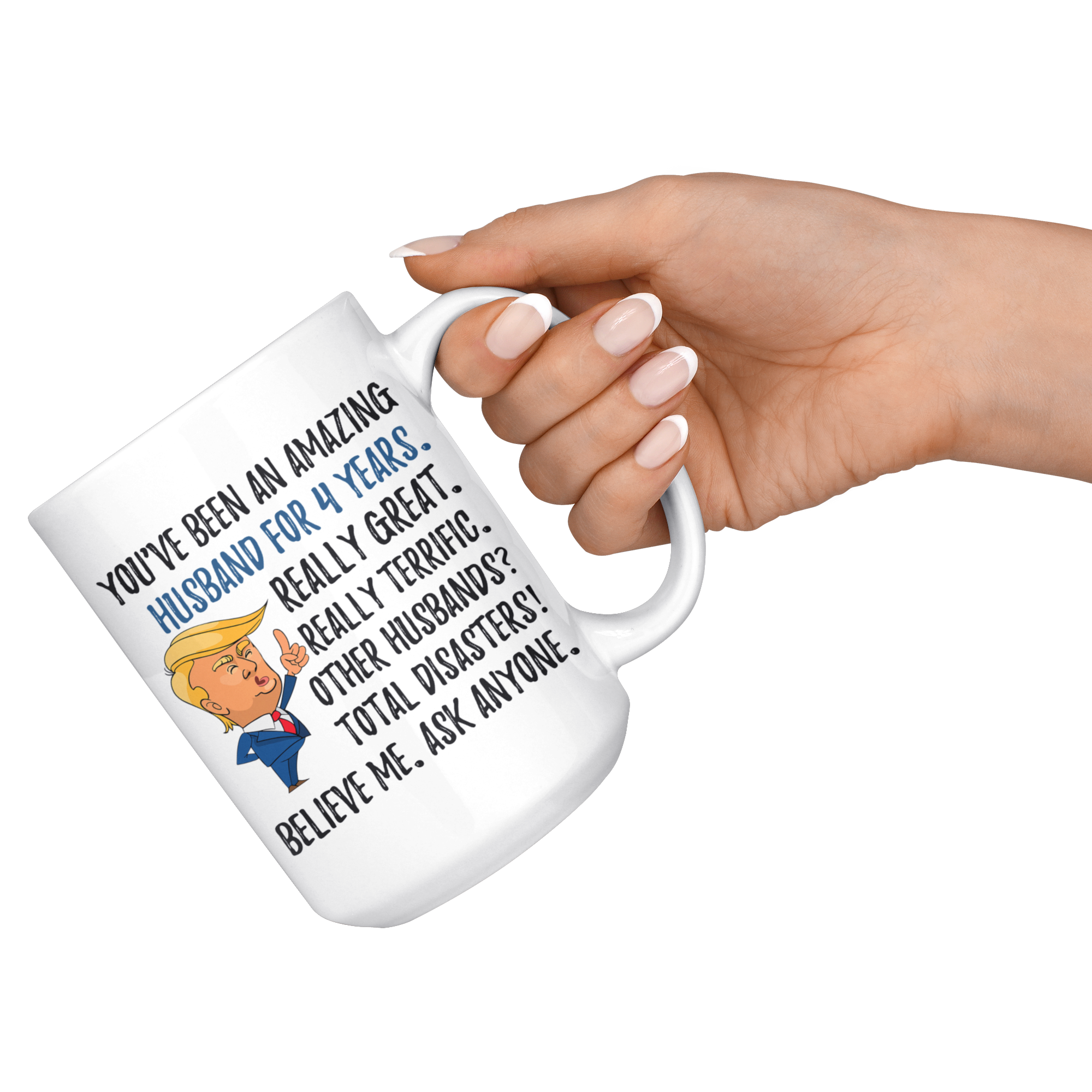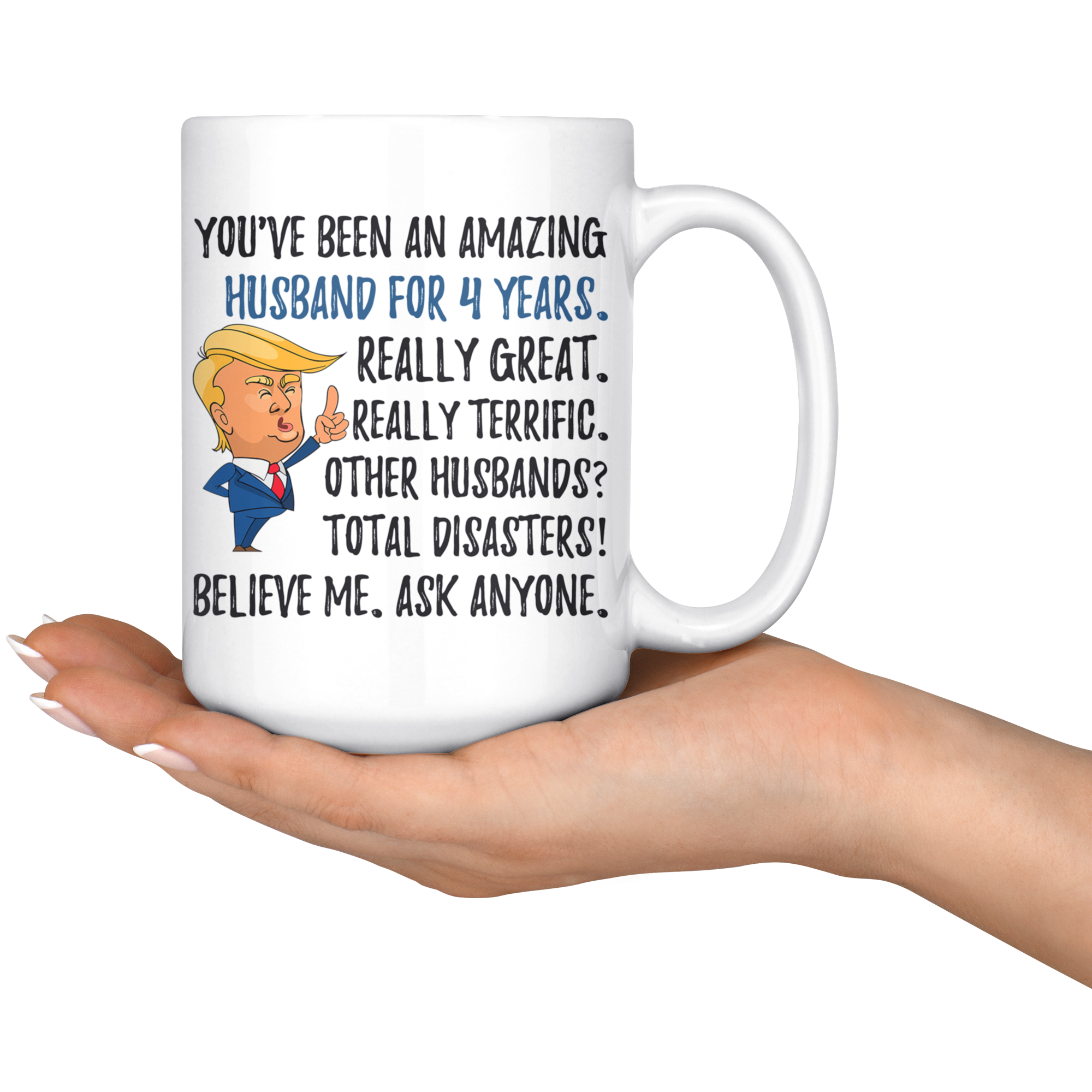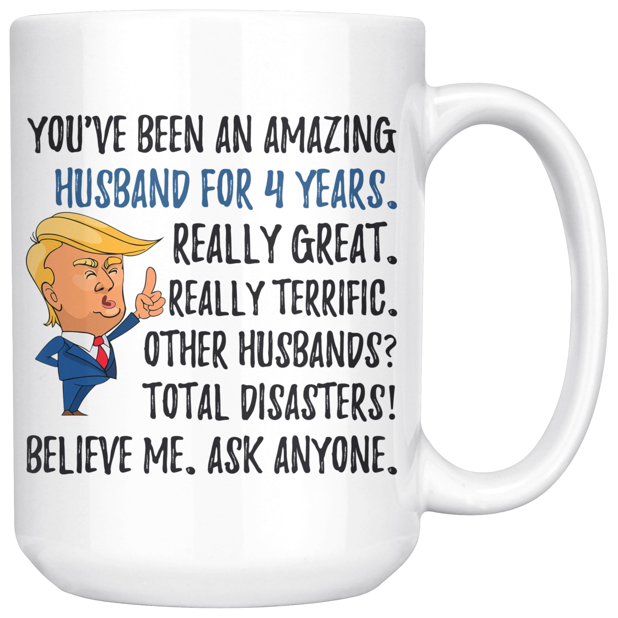 Funny Amazing Husband For 4 Years Coffee Mug, Fourth Anniversary Husband Trump Gifts, 4th Anniversary Mug, Four Years Together With My Hubby