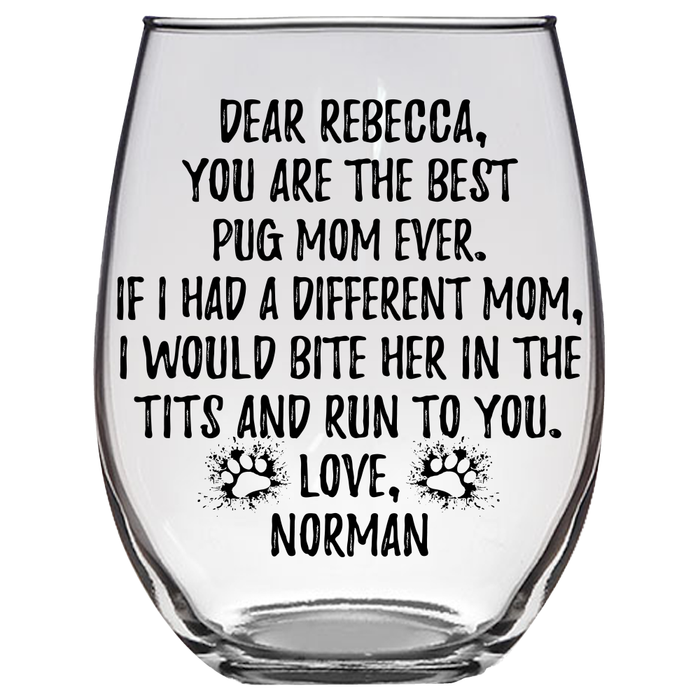 Rebecca Norman Pug Dog Mom Stemless Wine Glass