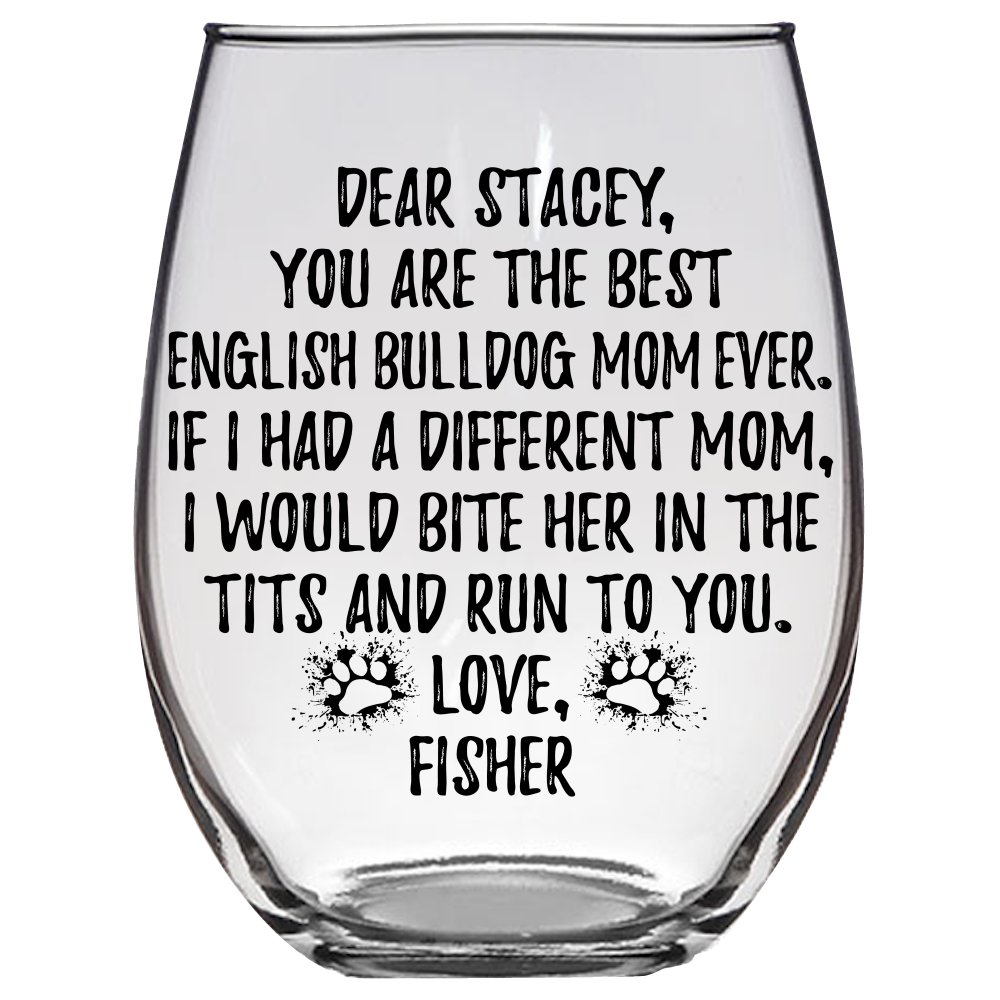 Stacey Fisher - English Bulldog Mom Stemless Wine Glass