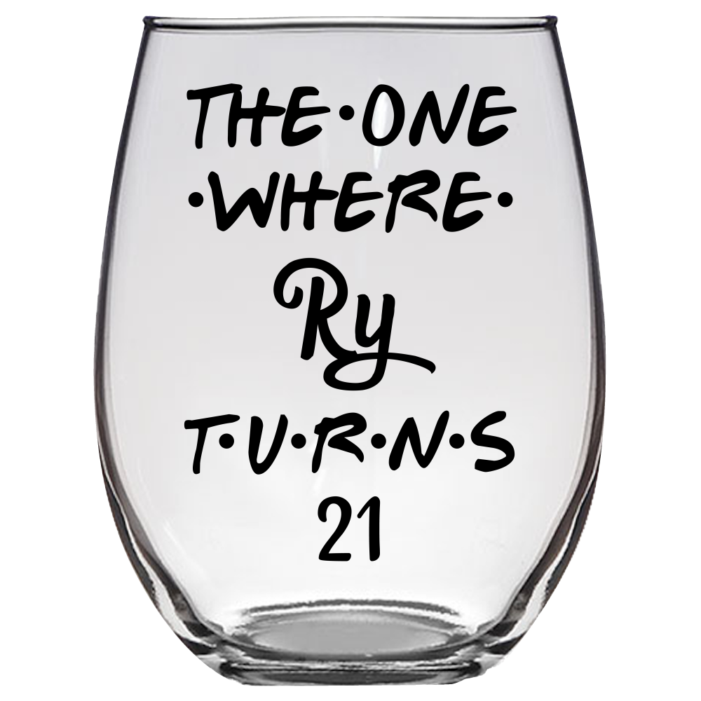 The One Where Ry Turns 21 Years Stemless Wine Glass (Laser Etched) - Clear